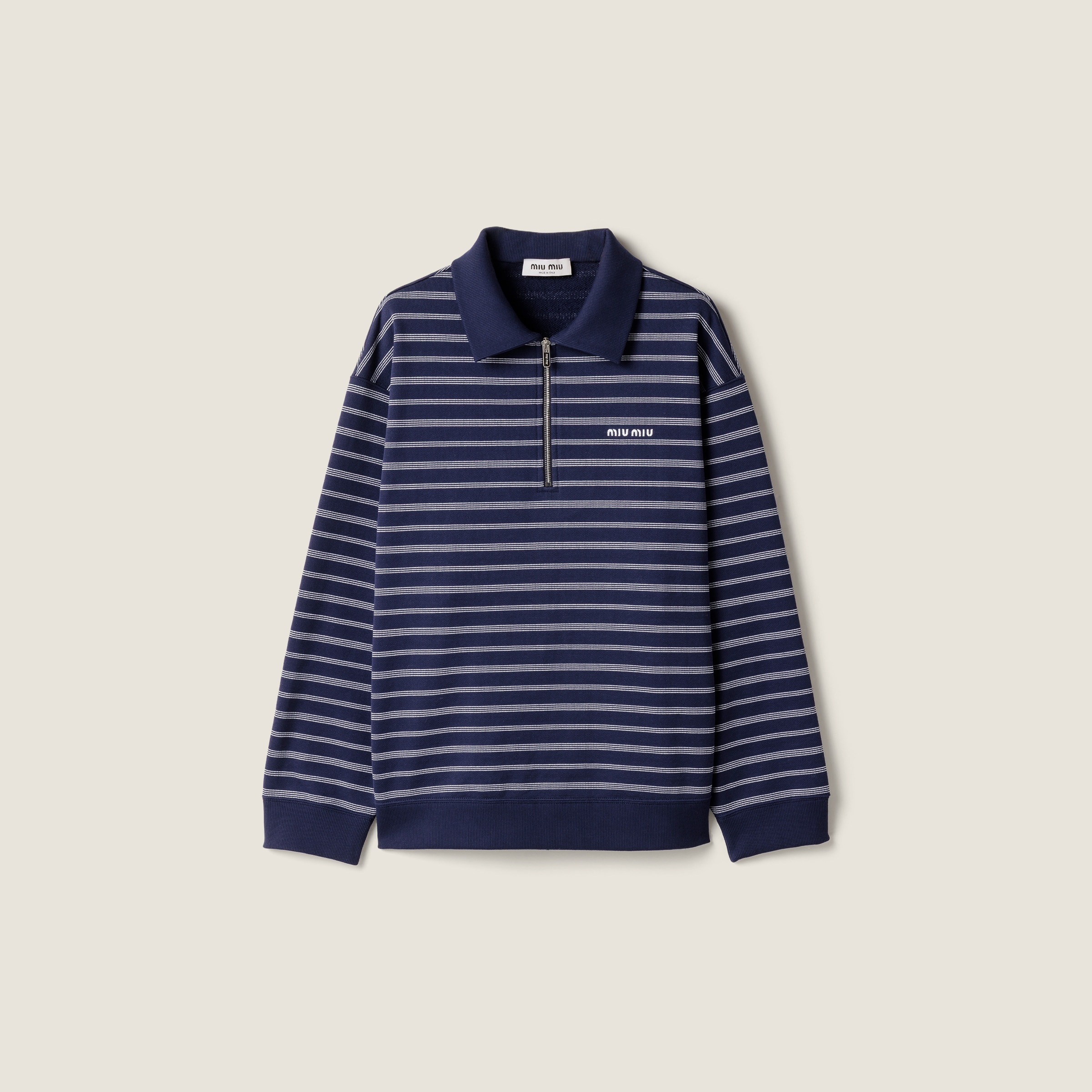 Поло в полоску на молнии MIU MIU, синий/белый