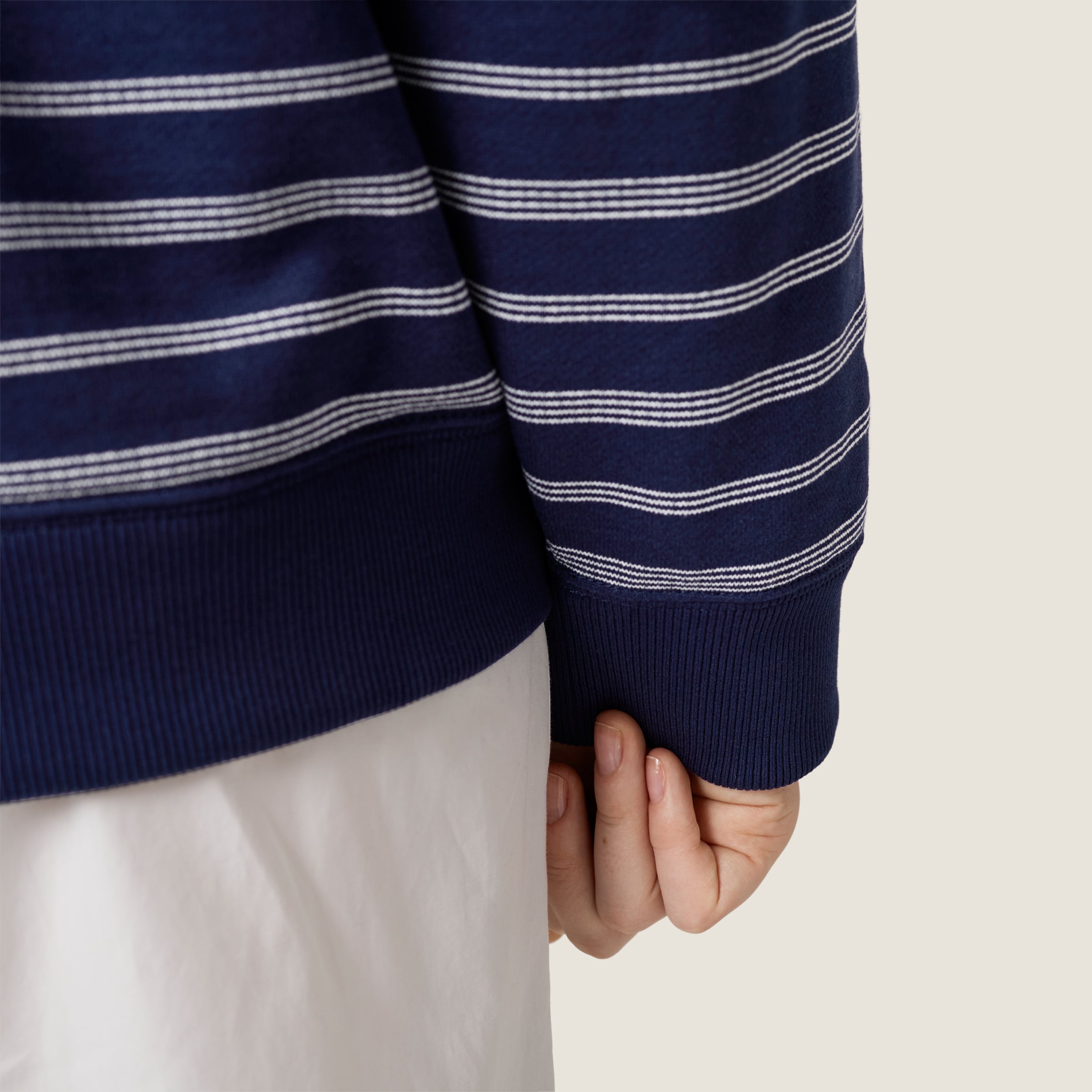 Неформальное настроение и фирменный вязаный полосатый узор выражают стиль этого хлопкового флисового поло с воротником и манжетами из рубчатого трикотажа и изысканной деталью в виде вышитого логотипа.