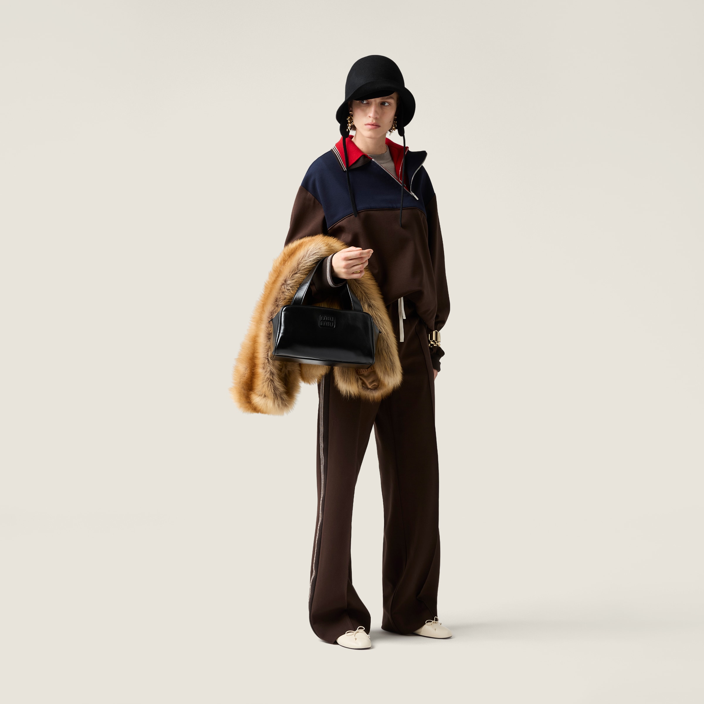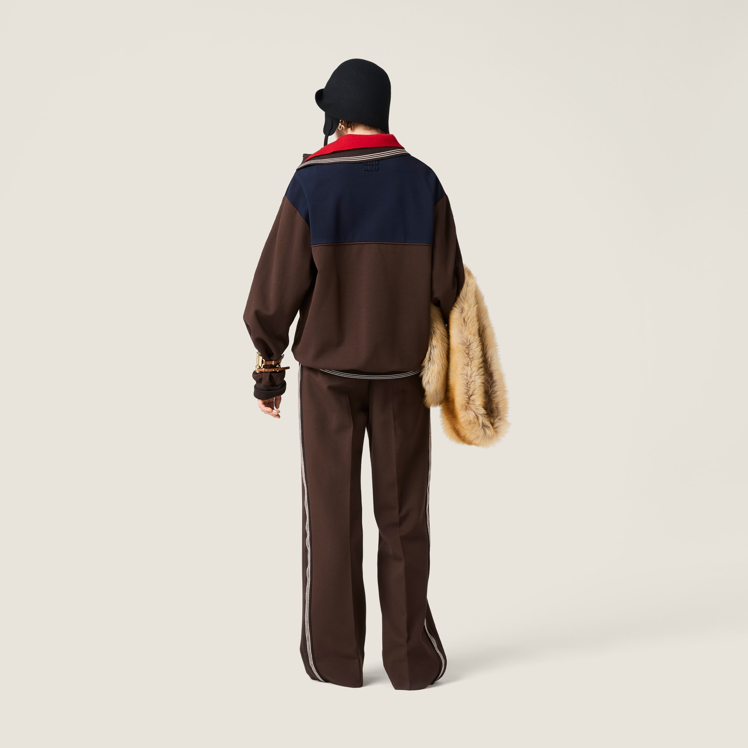 Элегантный спортивный дух этой толстовки подчеркивается свободным кроем и изысканной боковой молнией, воплощая подлинный экспериментаторский подход Miu Miu и выражая постоянно развивающуюся женственность.