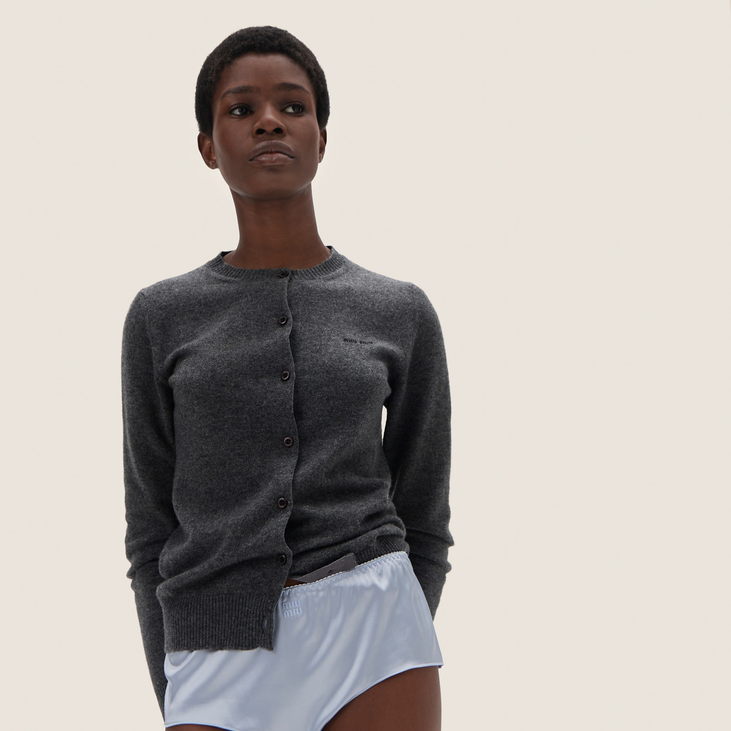 Вышитый логотип Miu Miu выделяется на фоне изящных линий этих атласных трусиков благодаря своему знаковому и узнаваемому акценту.