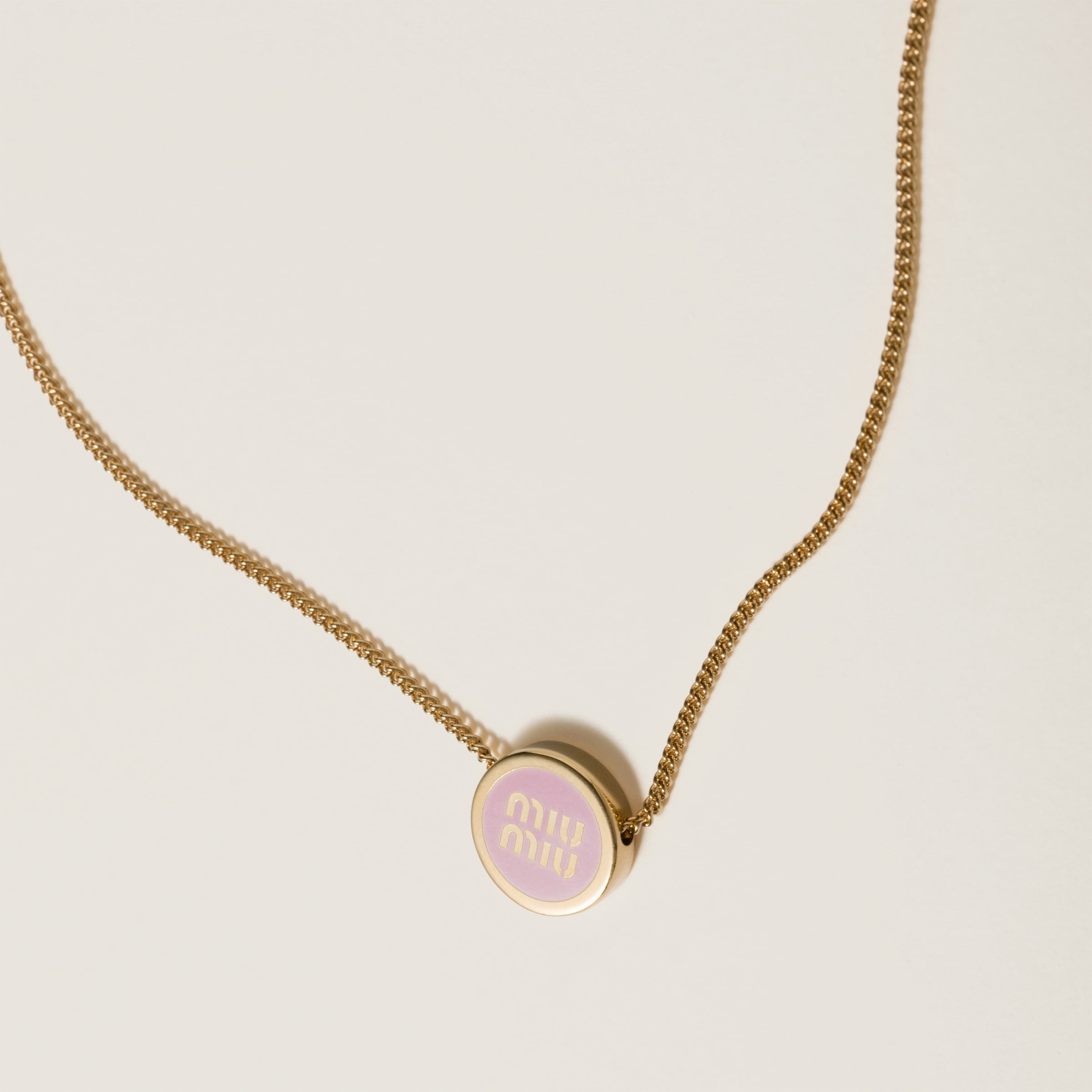 Логотип Miu Miu выделяется на изящных линиях этого металлического ожерелья благодаря своему культовому характеру.