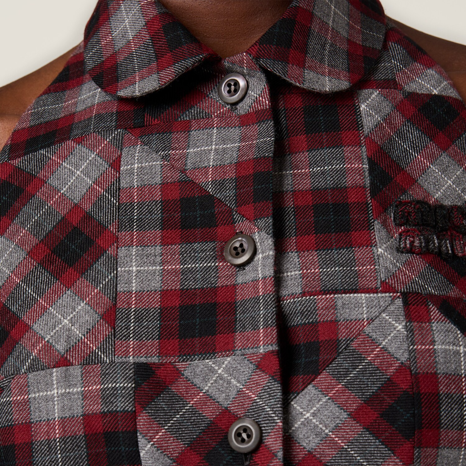 Лоскутное сочетание цветов и тартановых мотивов определяет суть этого шерстяного топа, вдохновленного традиционным шотландским стилем и женственностью Miu Miu, выраженной в четких линиях и смелом вырезе.