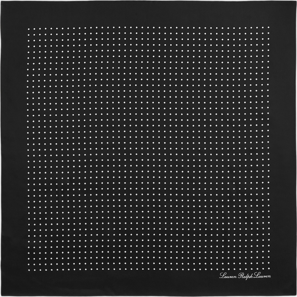 Это шелковый квадратный платок Lauren Ralph Lauren в горошек черного цвета.