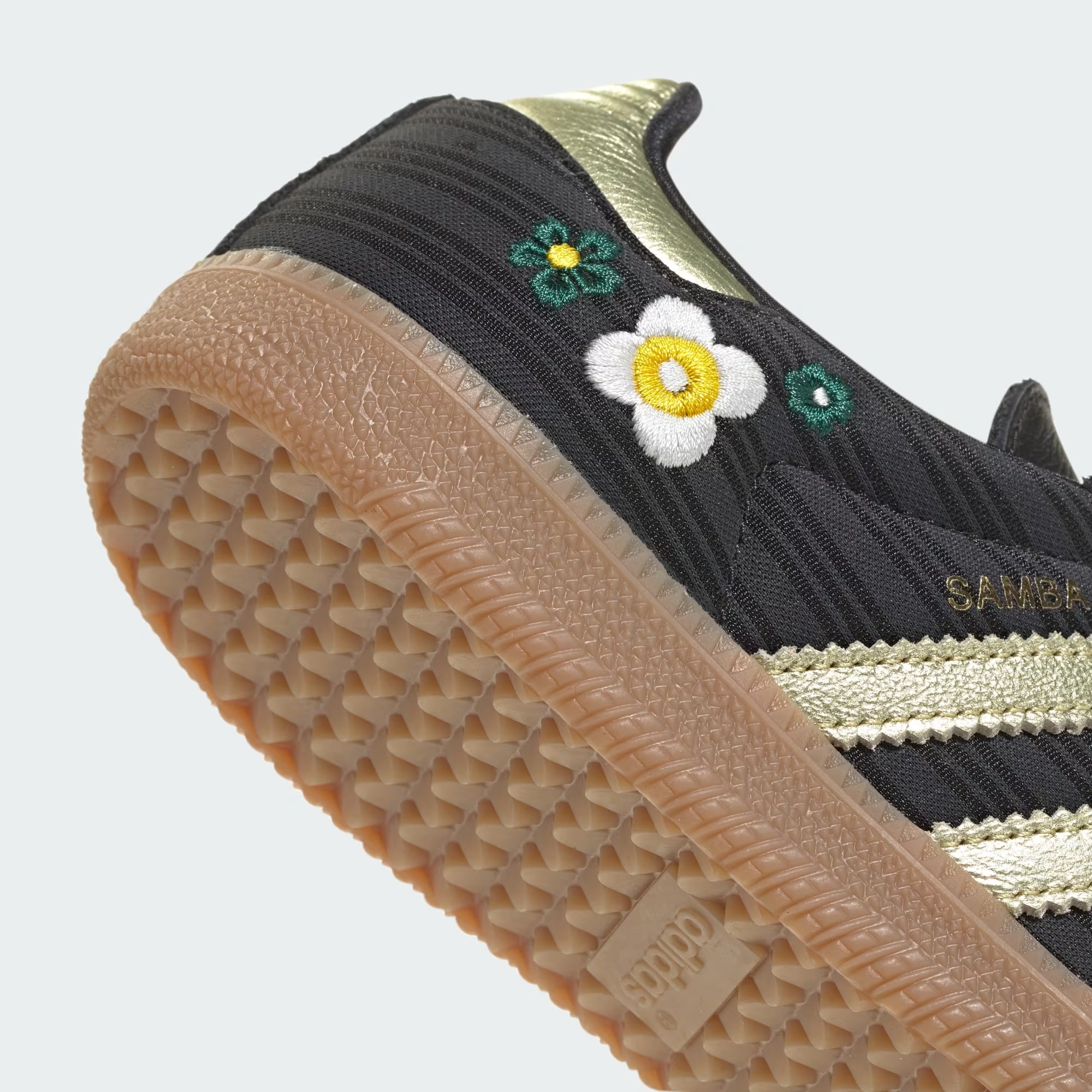 Классические кроссовки Samba OG, вдохновлённые волшебным садом в полночь и выставкой цветов в Хэмптон-Корте. Модель сочетает в себе культовый дизайн, наследие adidas и современный комфорт с игривыми цветочными деталями, создавая уникальный и завораживающий образ.