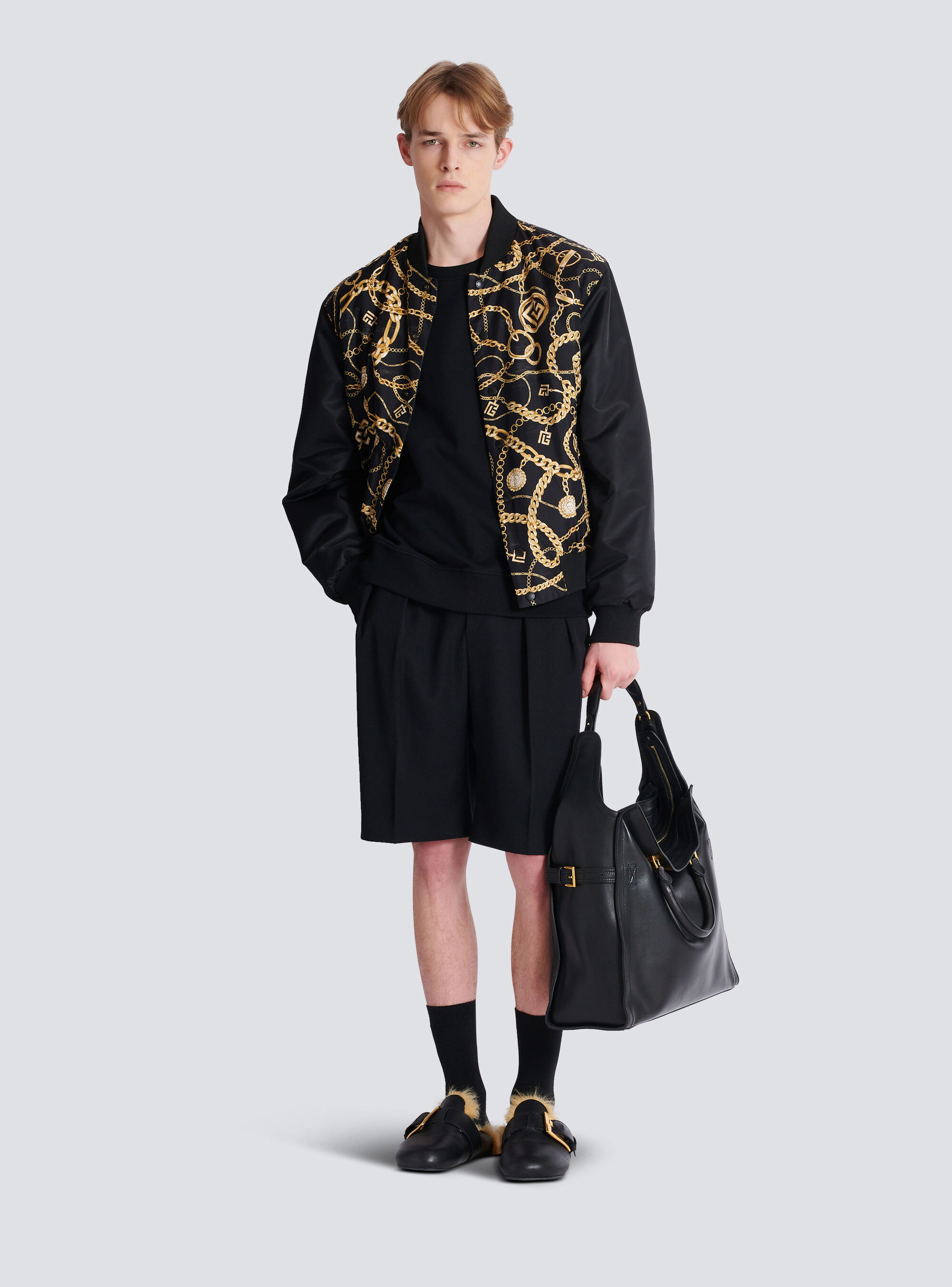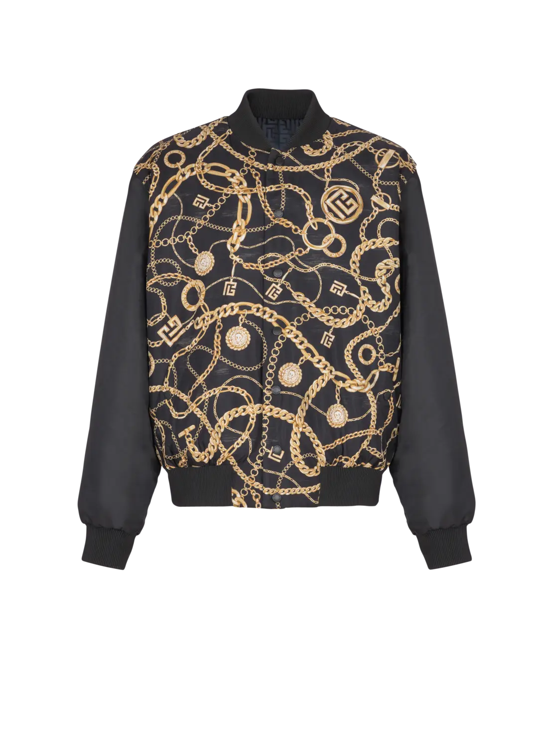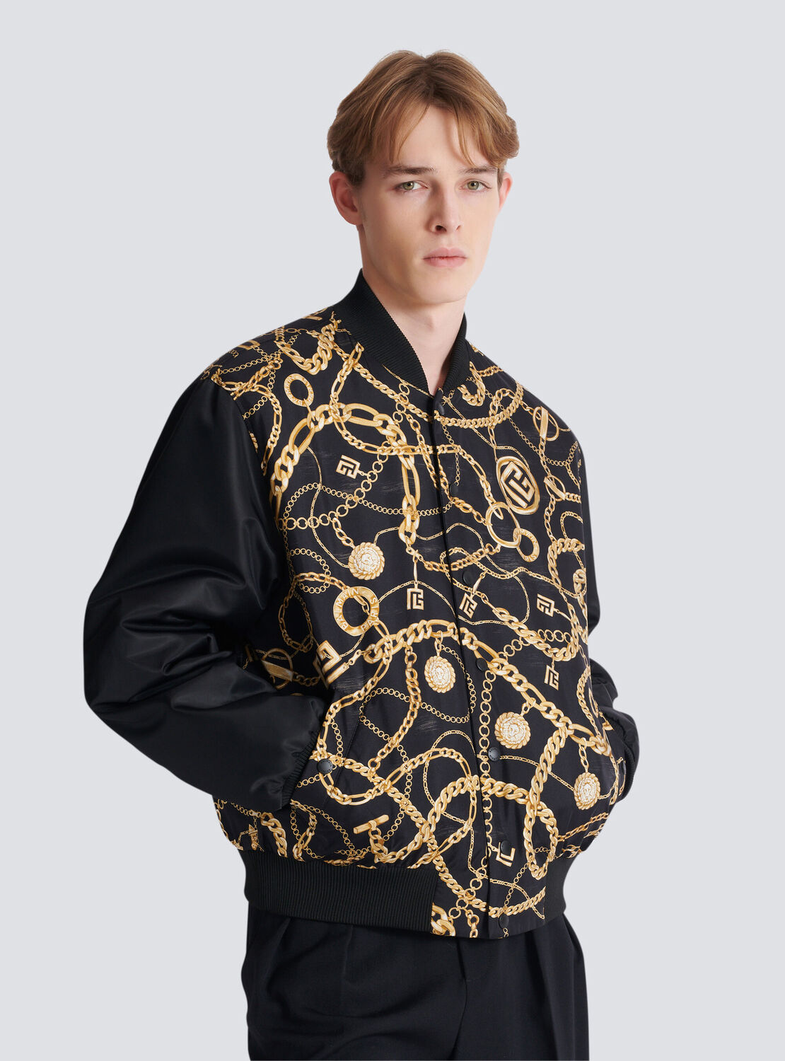 Двусторонний бомбер с принтом и узором Chaines Balmain, черный