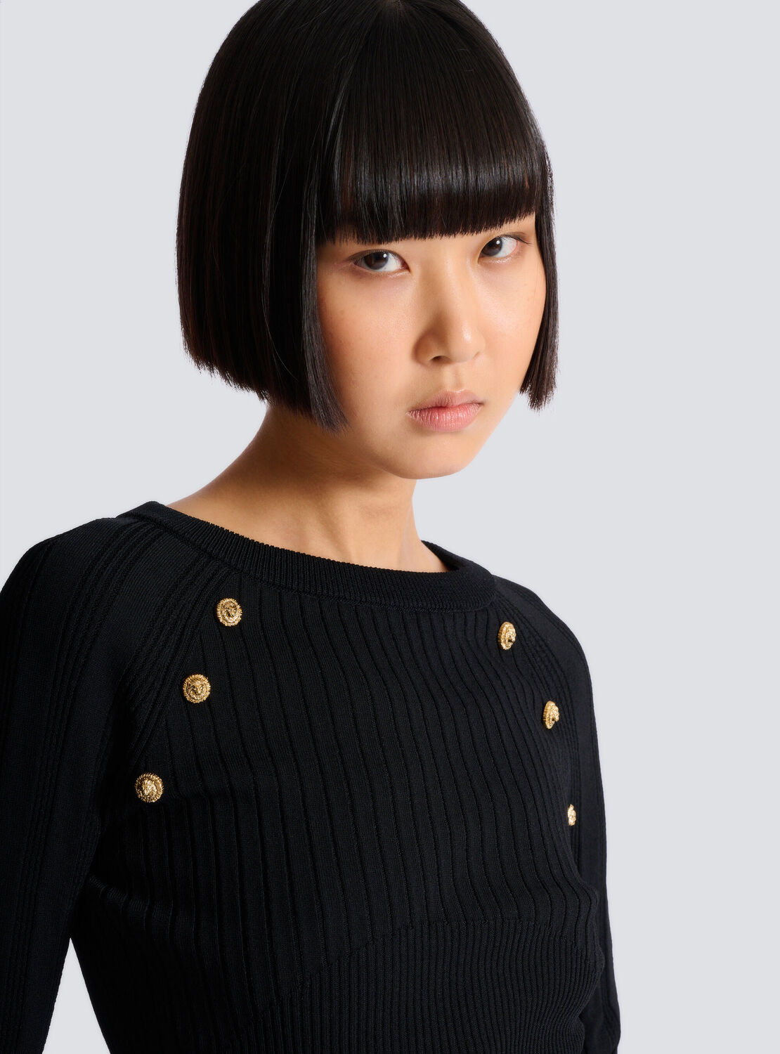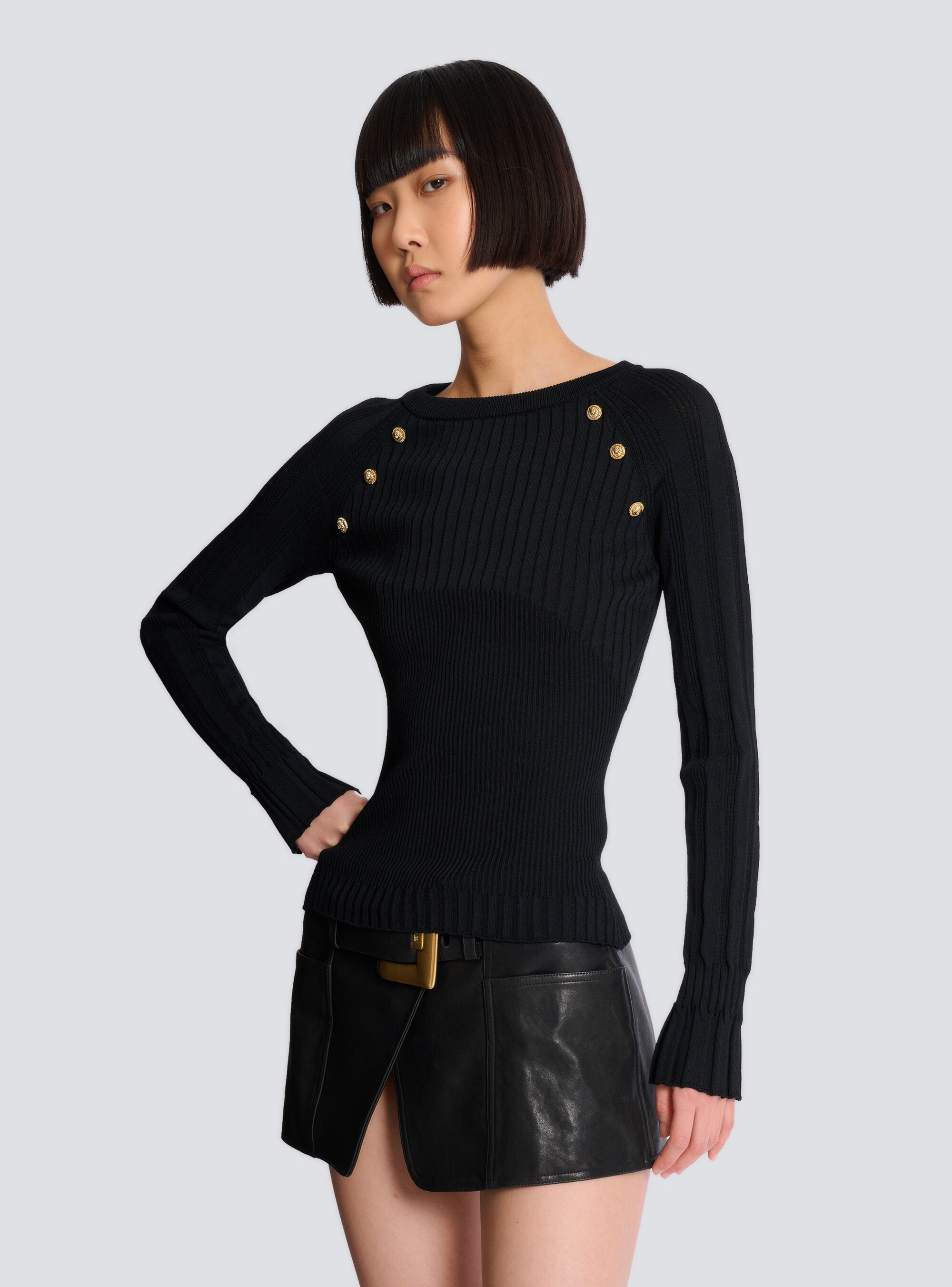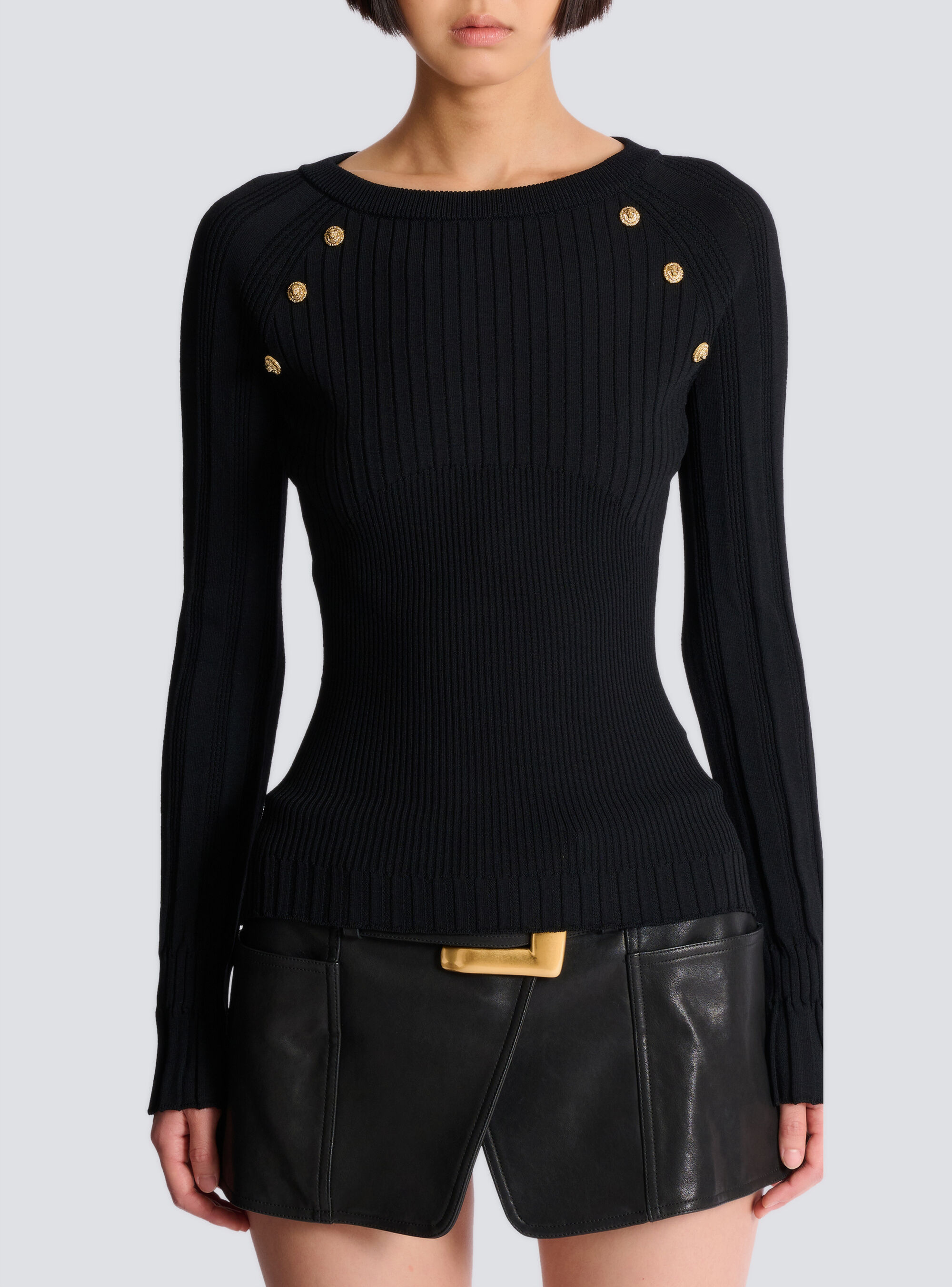 Вязаный топ с пуговицами Balmain, белый/черный