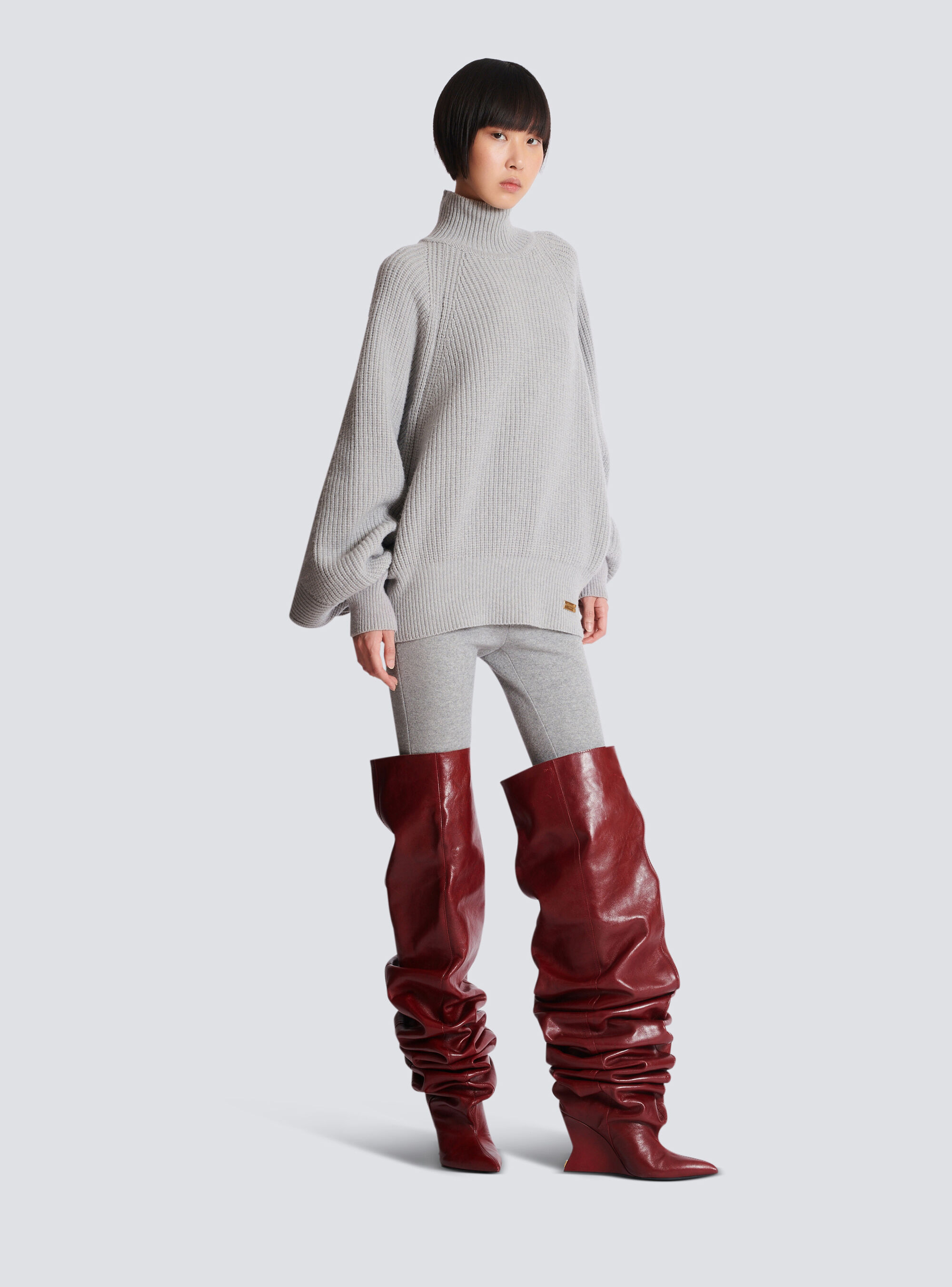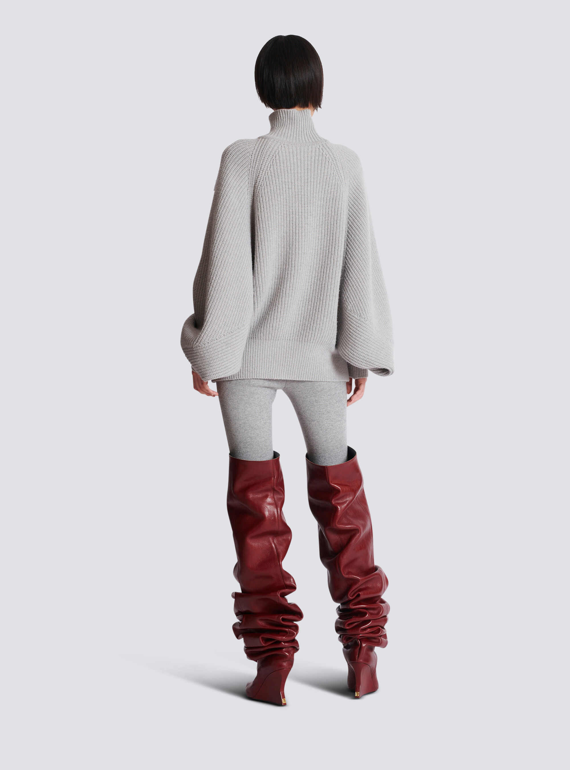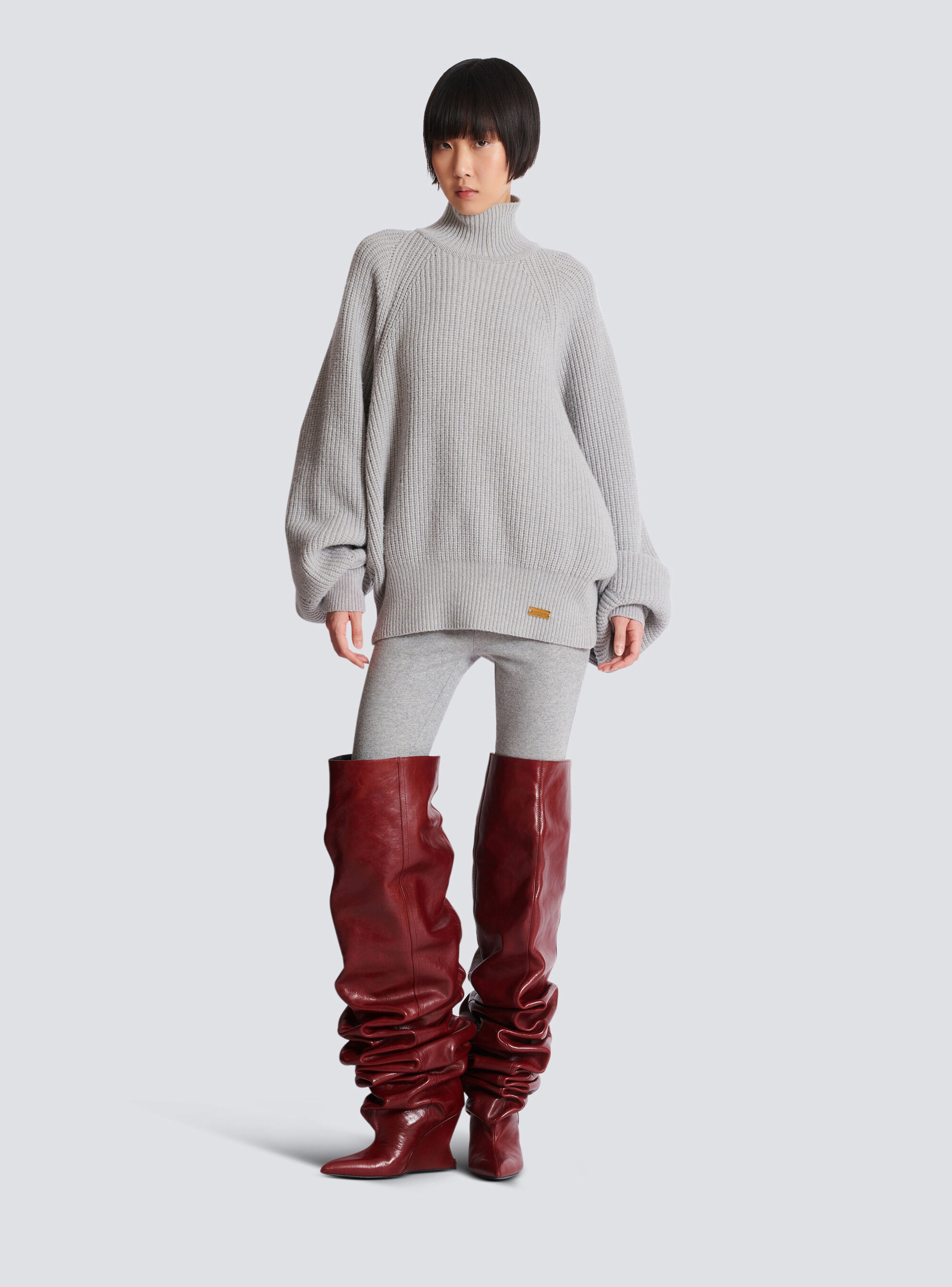 Вязаный джемпер в рубчик с высоким воротником Balmain, серый