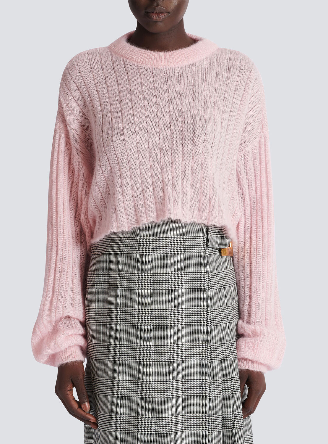 Укороченный джемпер из мохера Balmain, розовый