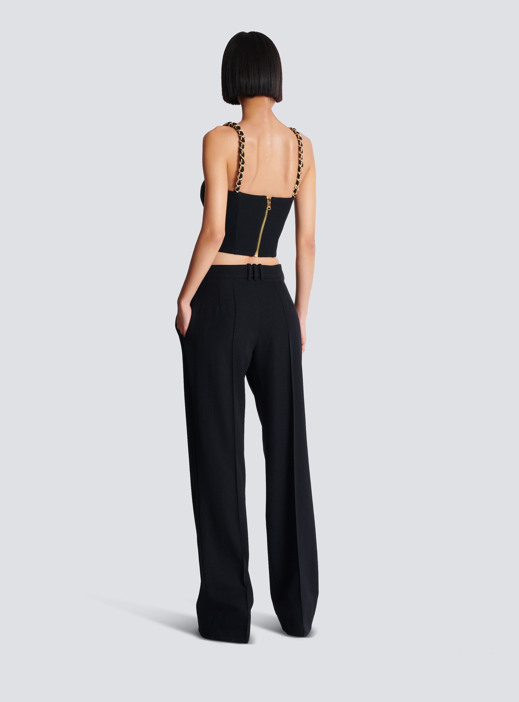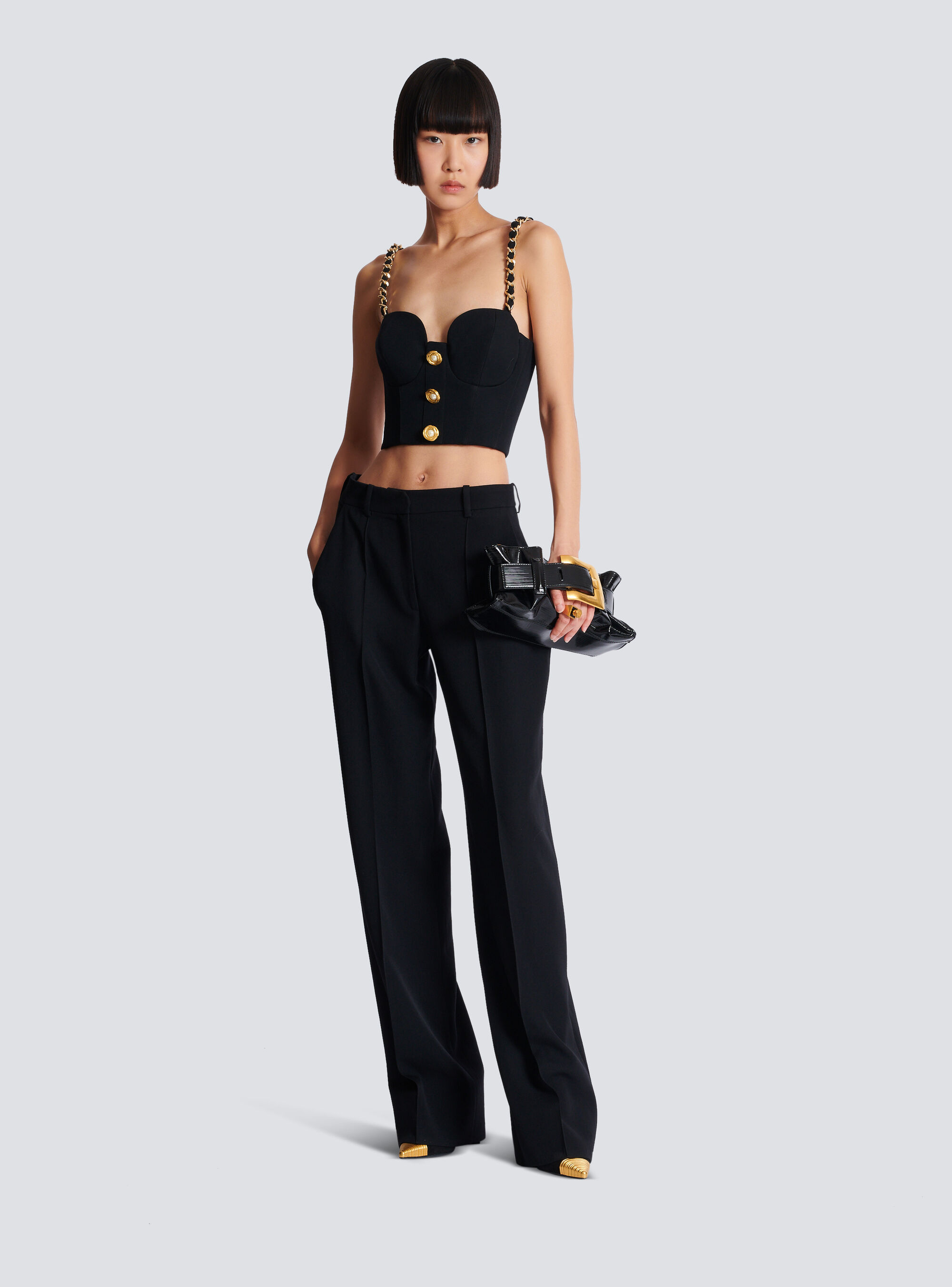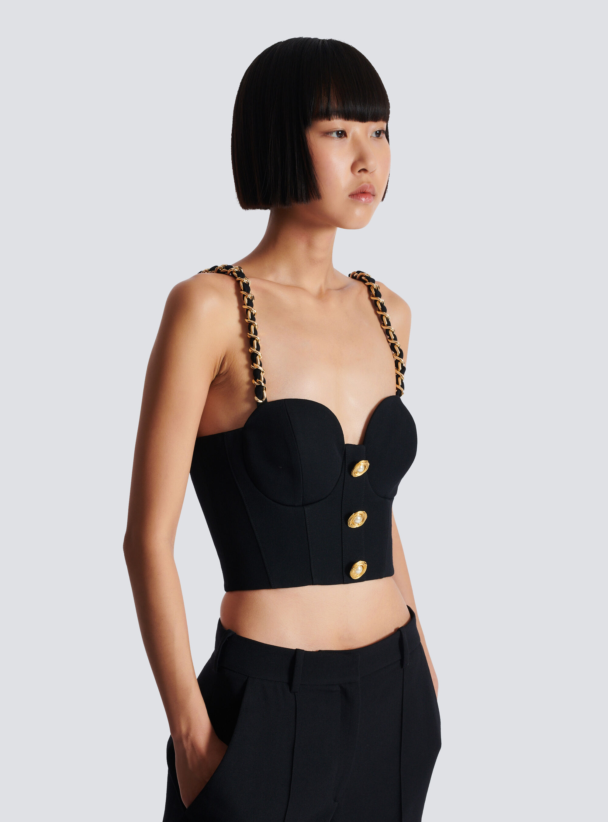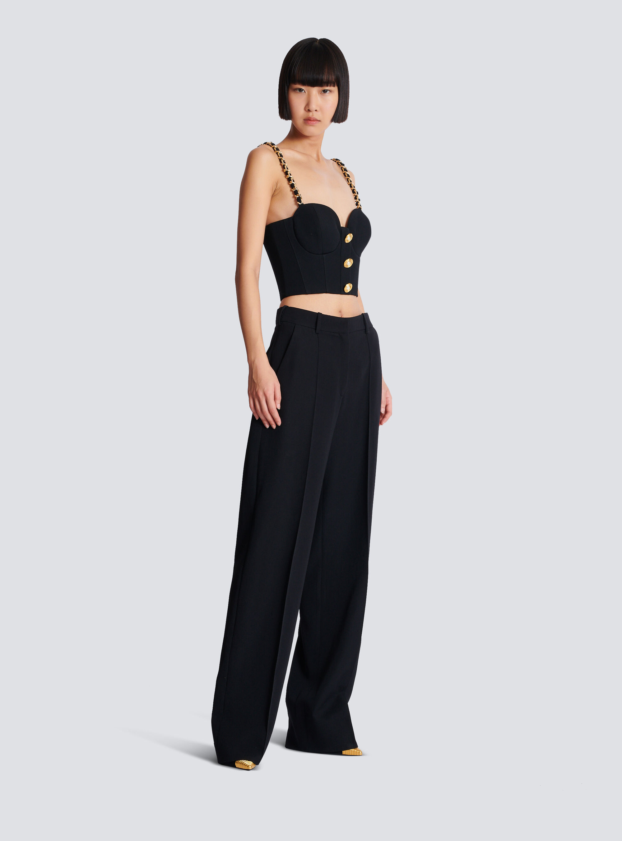 - 3 декоративные металлические пуговицы спереди, ползунок с гравировкой Balmain Paris