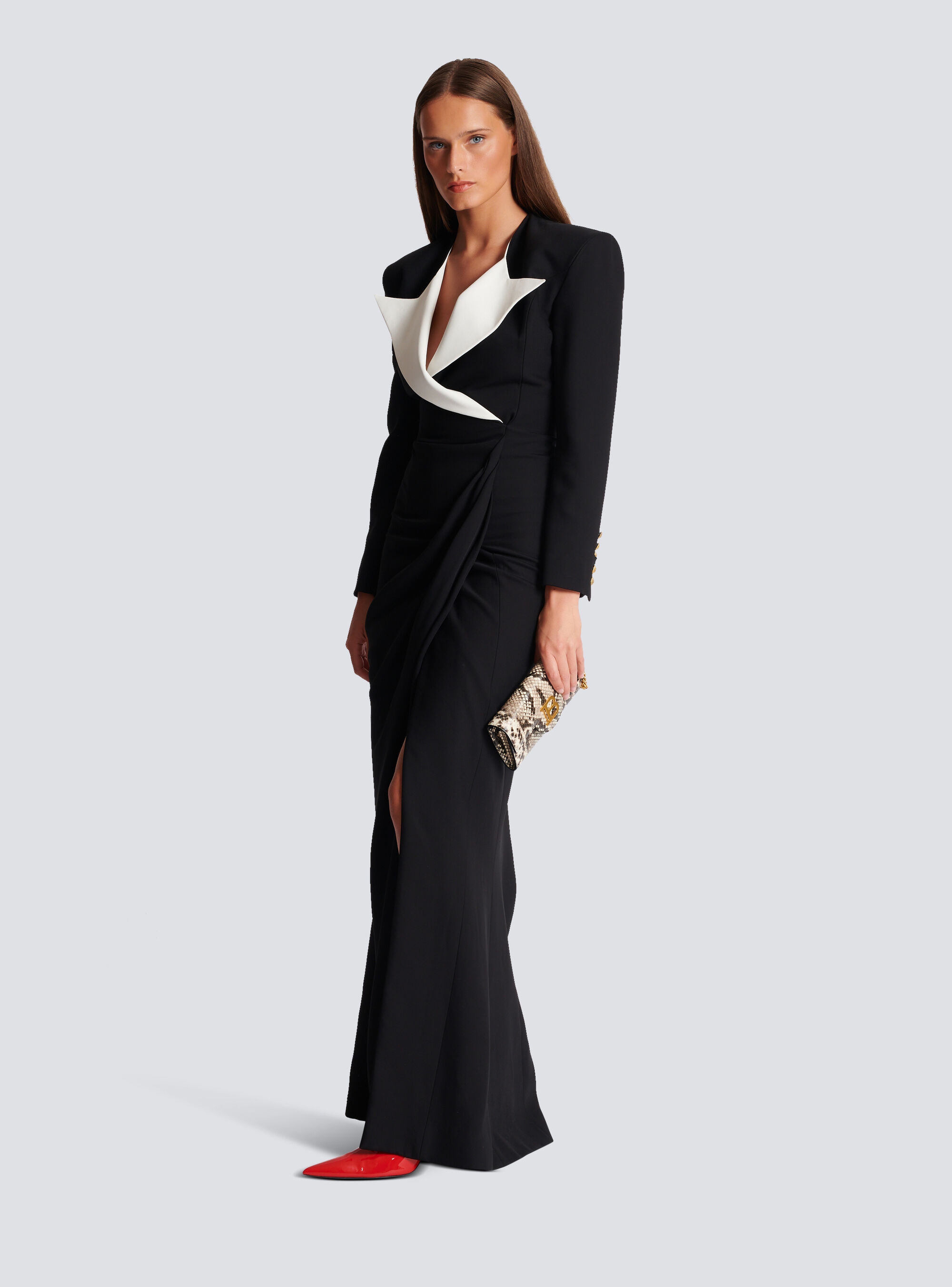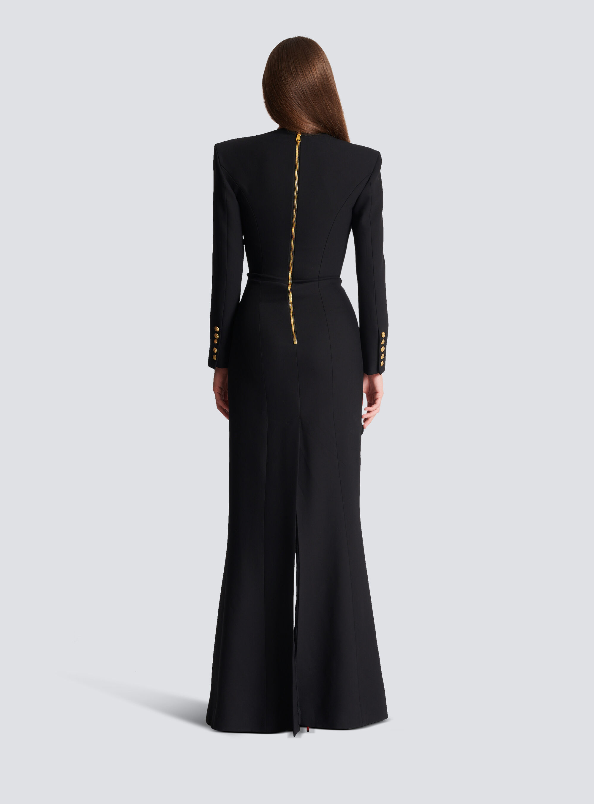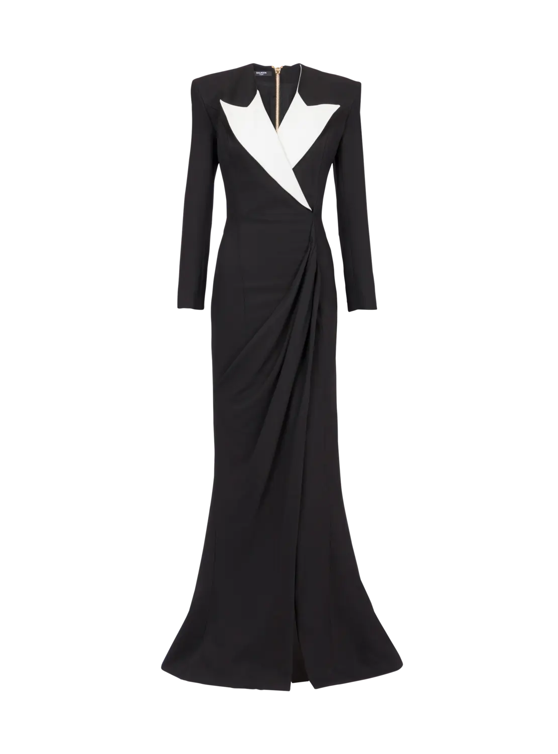 Длинное платье из структурированного крепа Balmain, черный 534 703₽