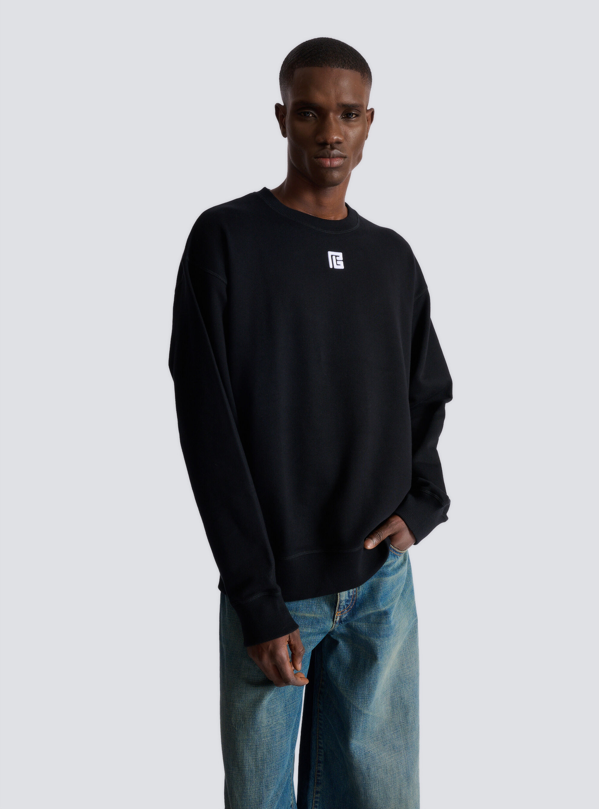 Хлопковый свитшот с вышивкой PB Balmain, черный 68 938₽