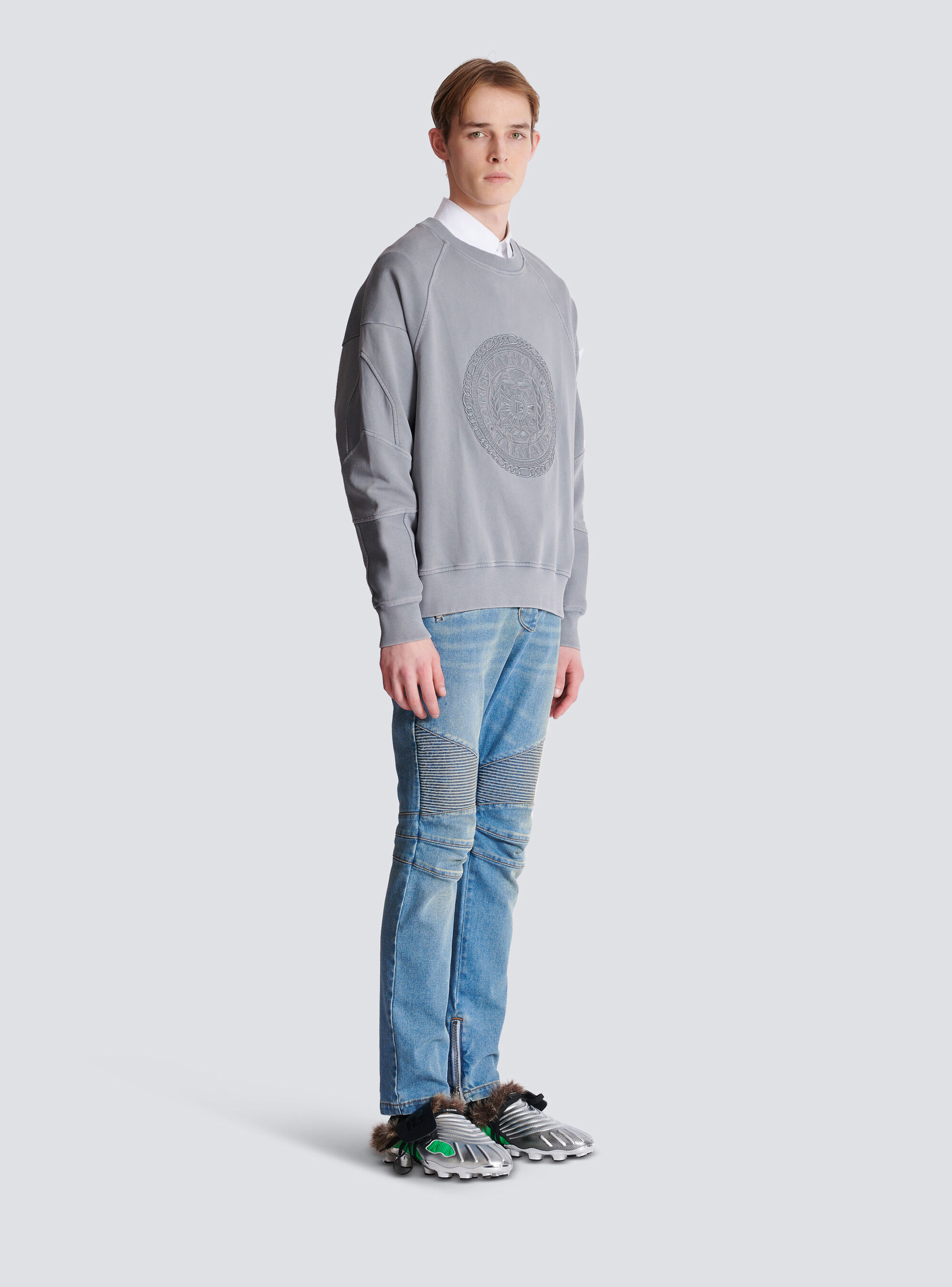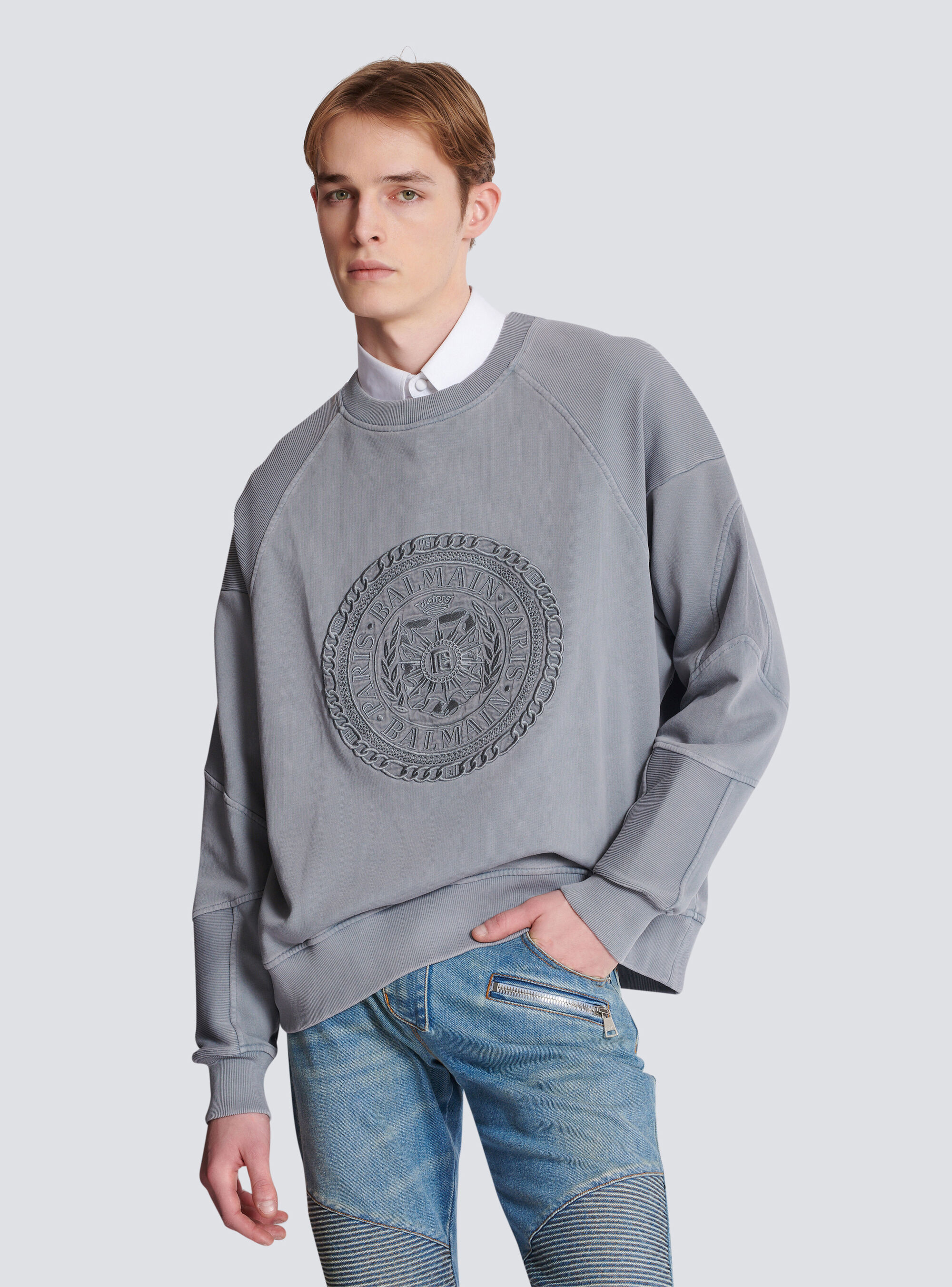 Вышитый свитшот Balmain Medaille, серый