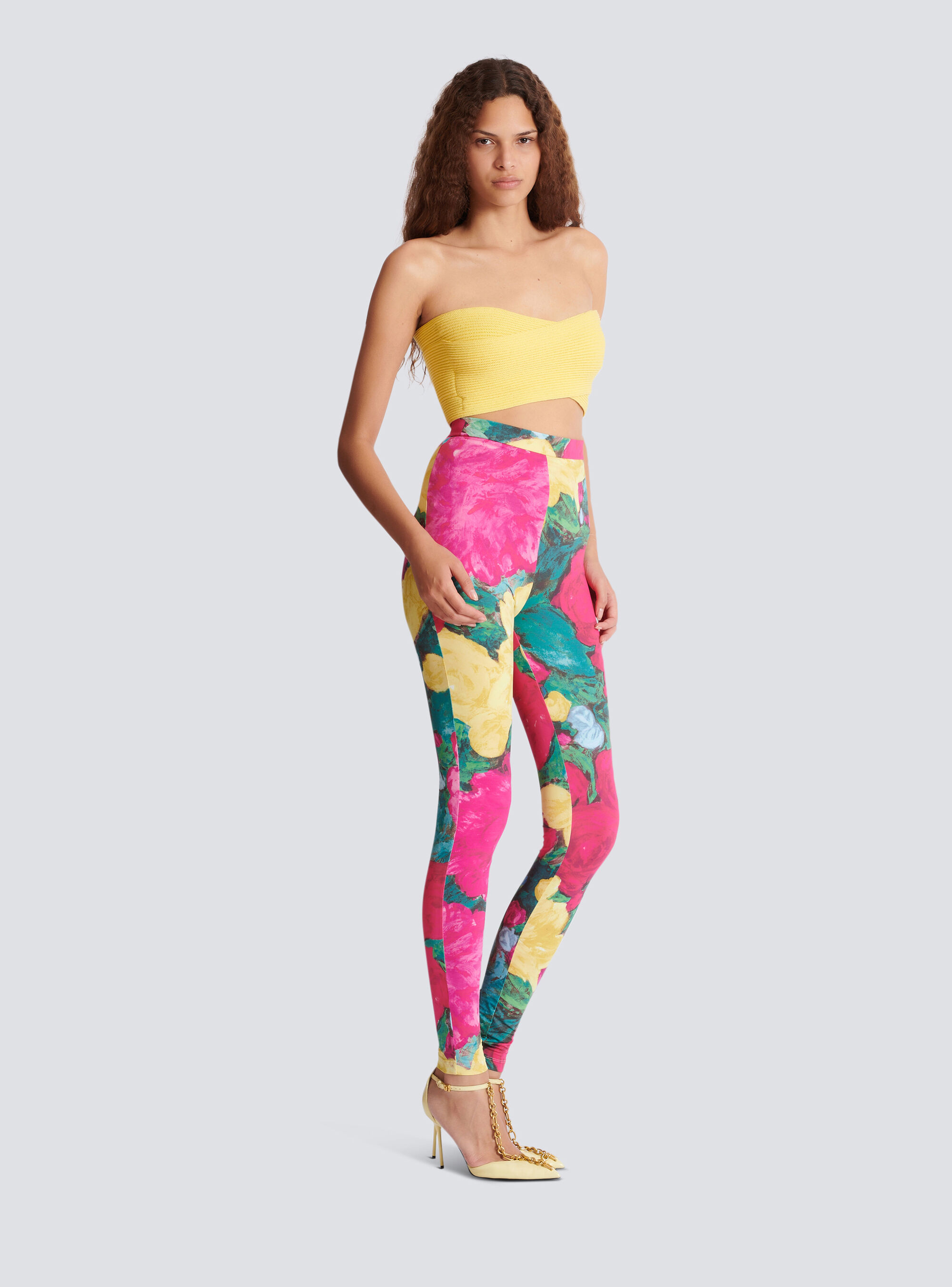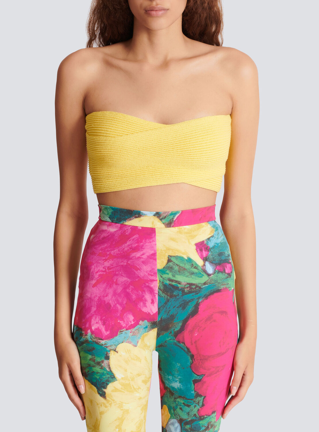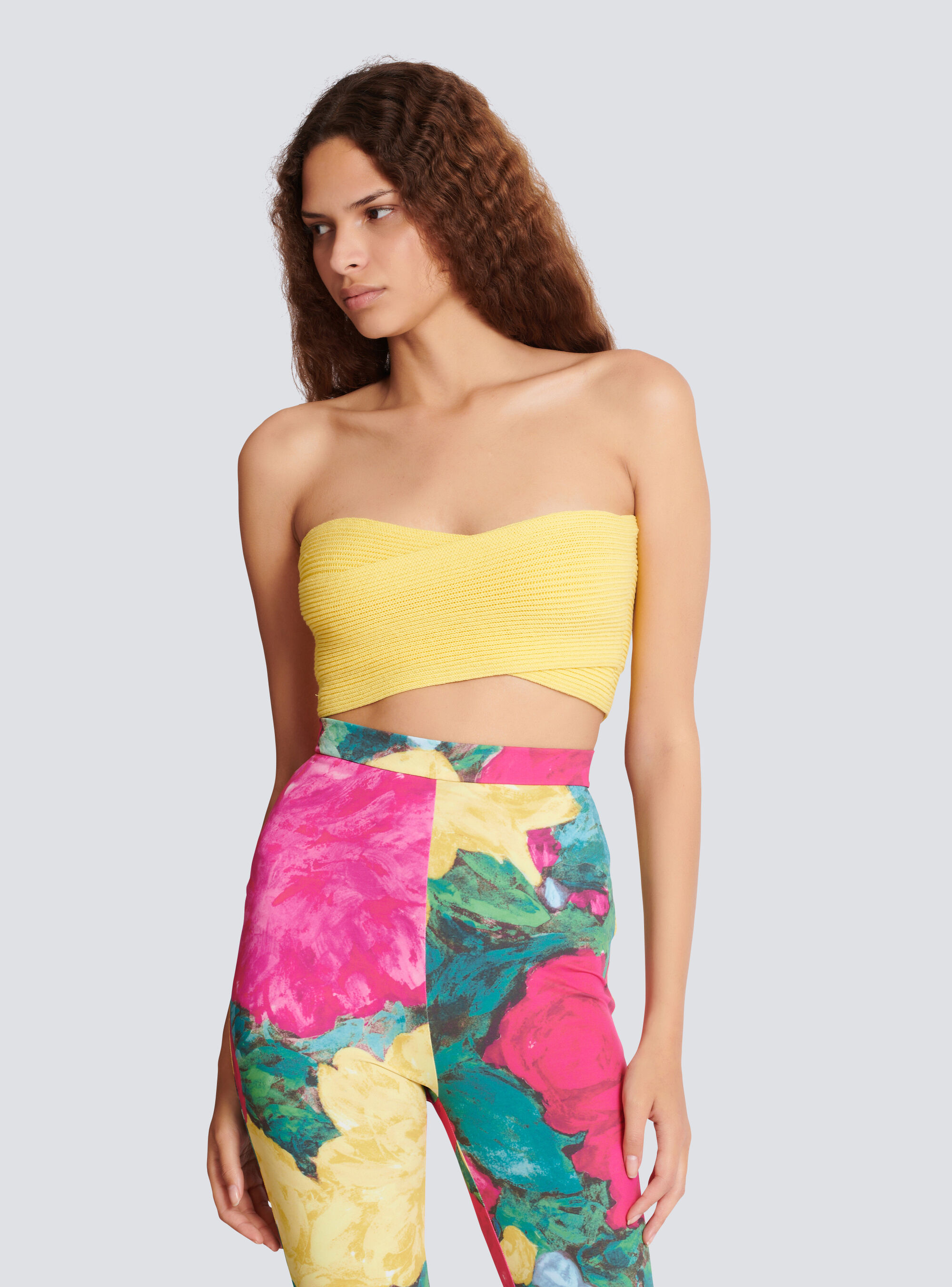 Бюстье из трубчатой вязки Balmain, желтый/черный