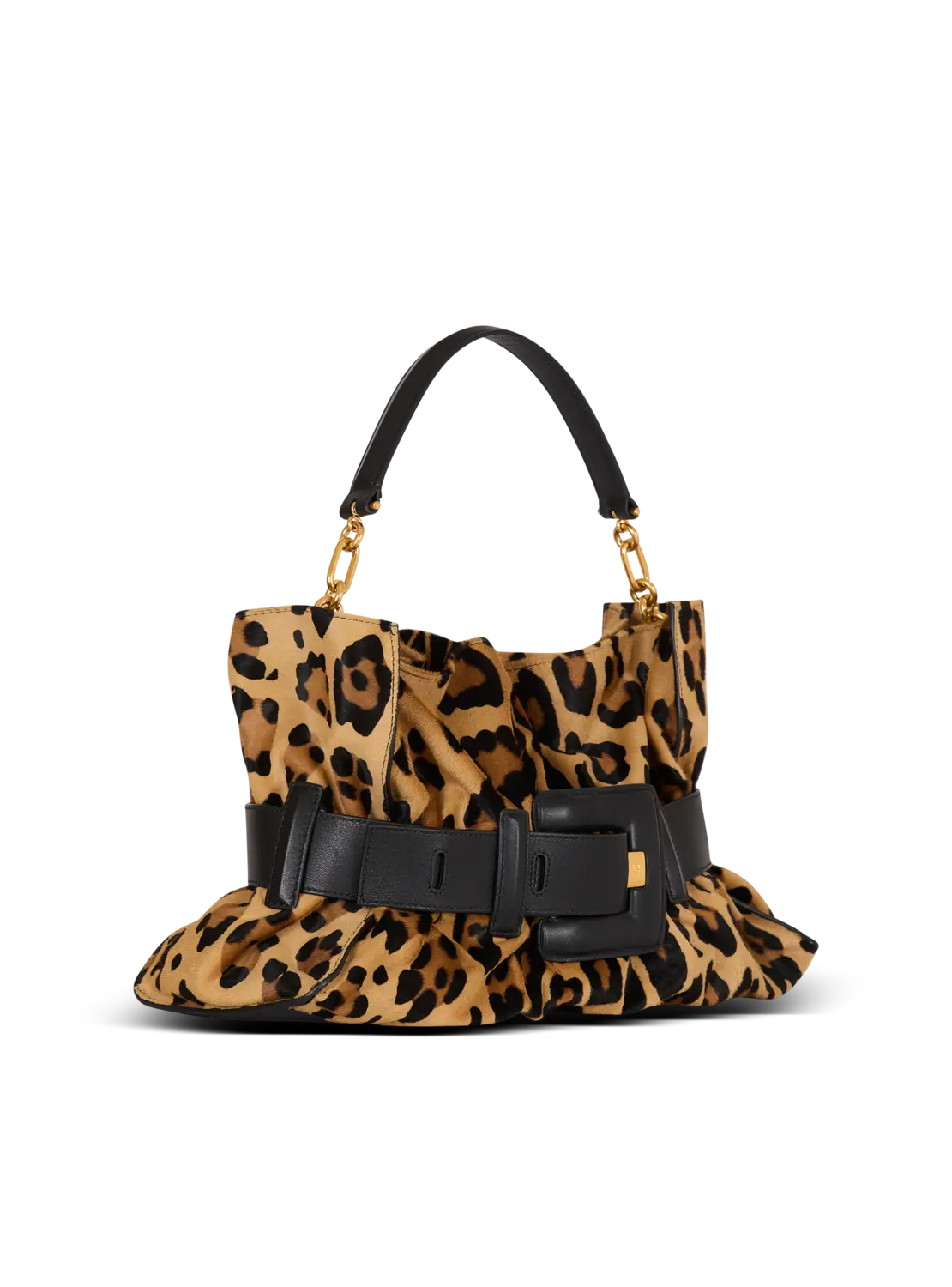 • Сумка Balmain Anthem Medium Shoulder из кожи под пони с леопардовым принтом
