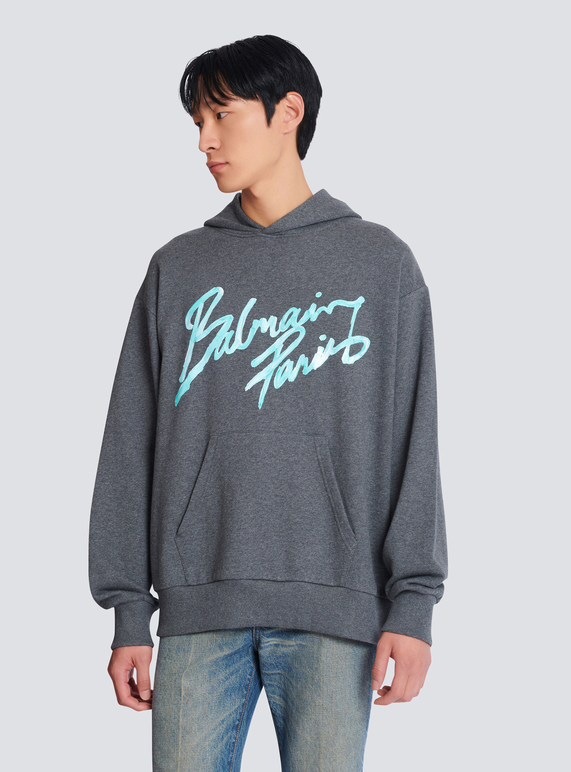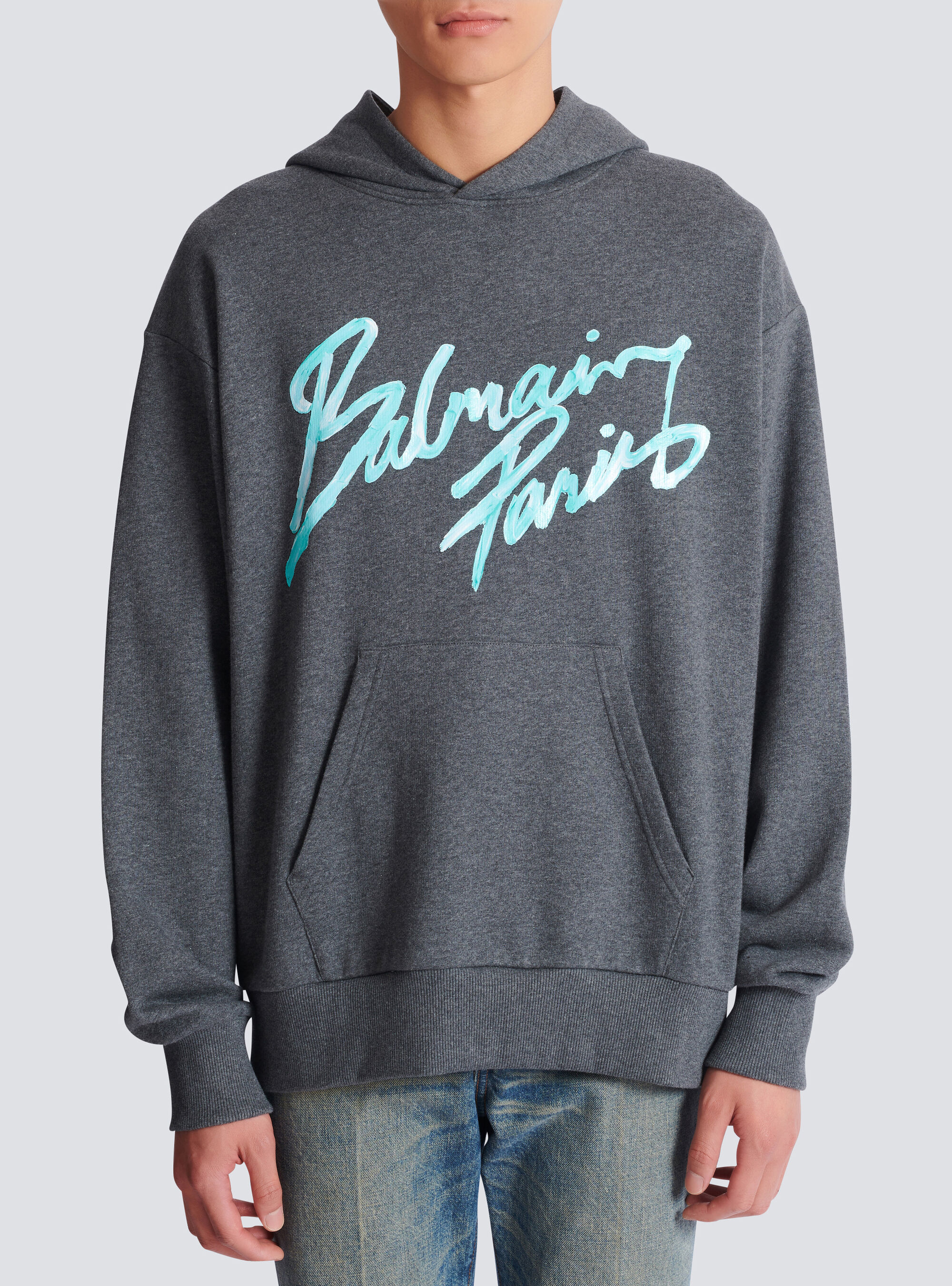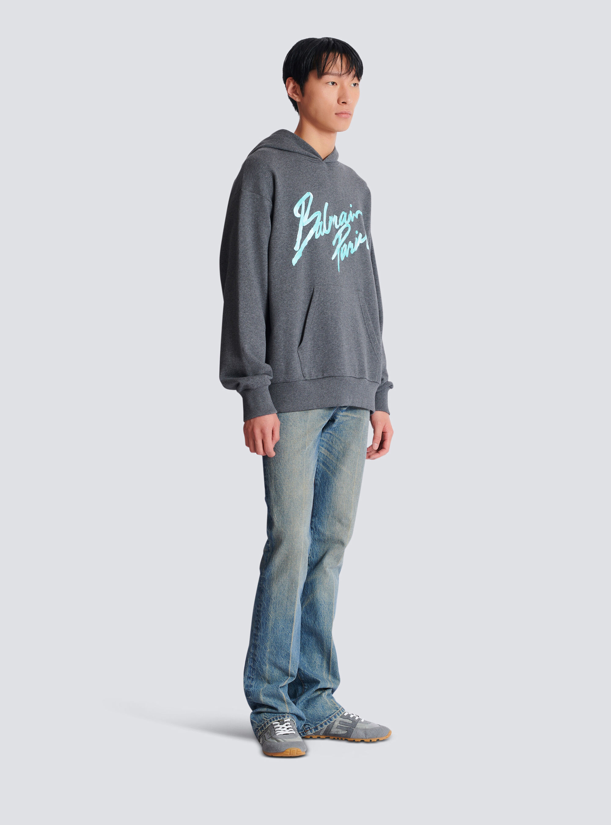 Худи с принтом Balmain, серый