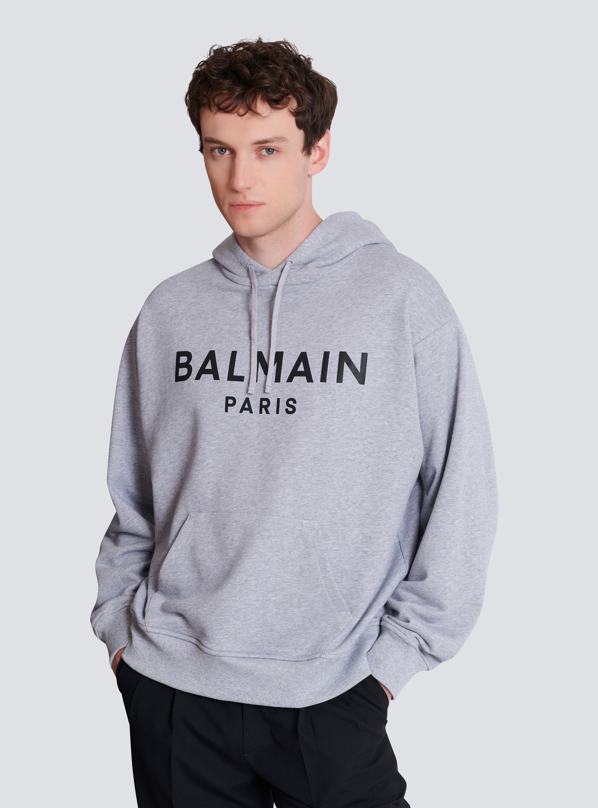 Хлопковое худи с принтом Balmain, серый 86 006₽