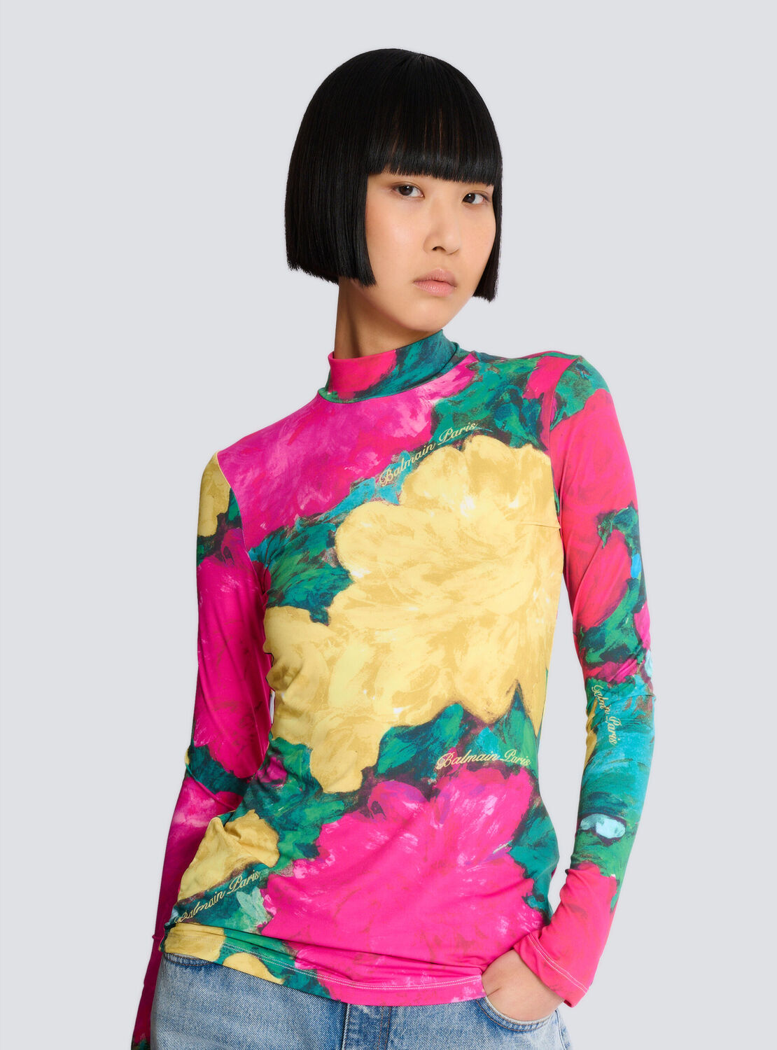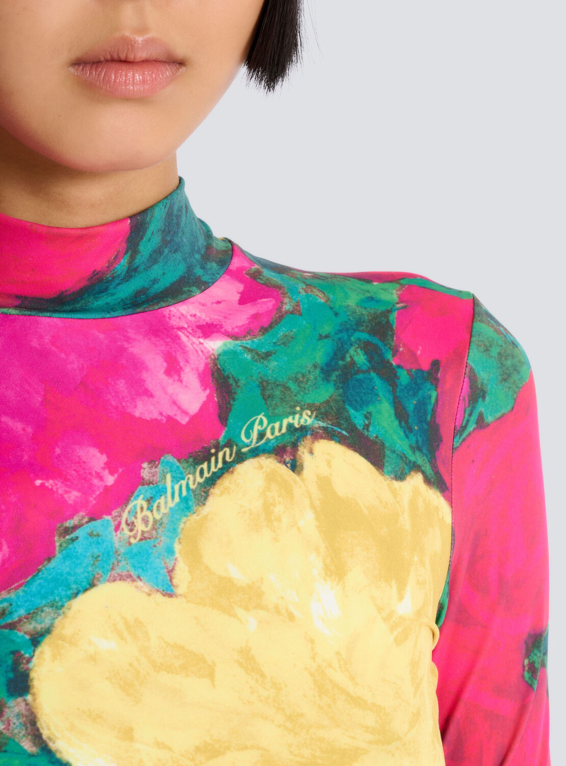 Топ с принтом и высоким воротом Balmain, мультиколор