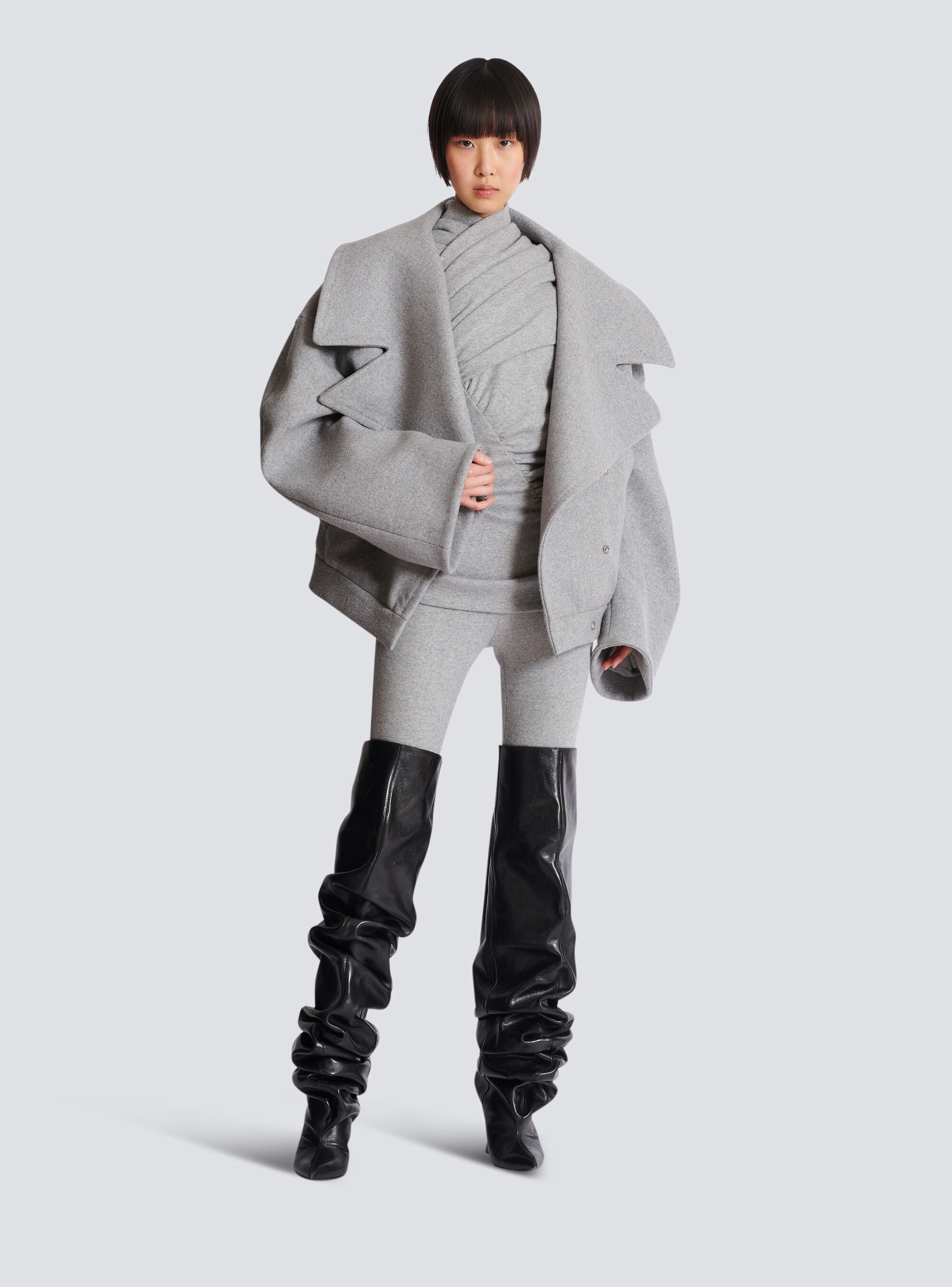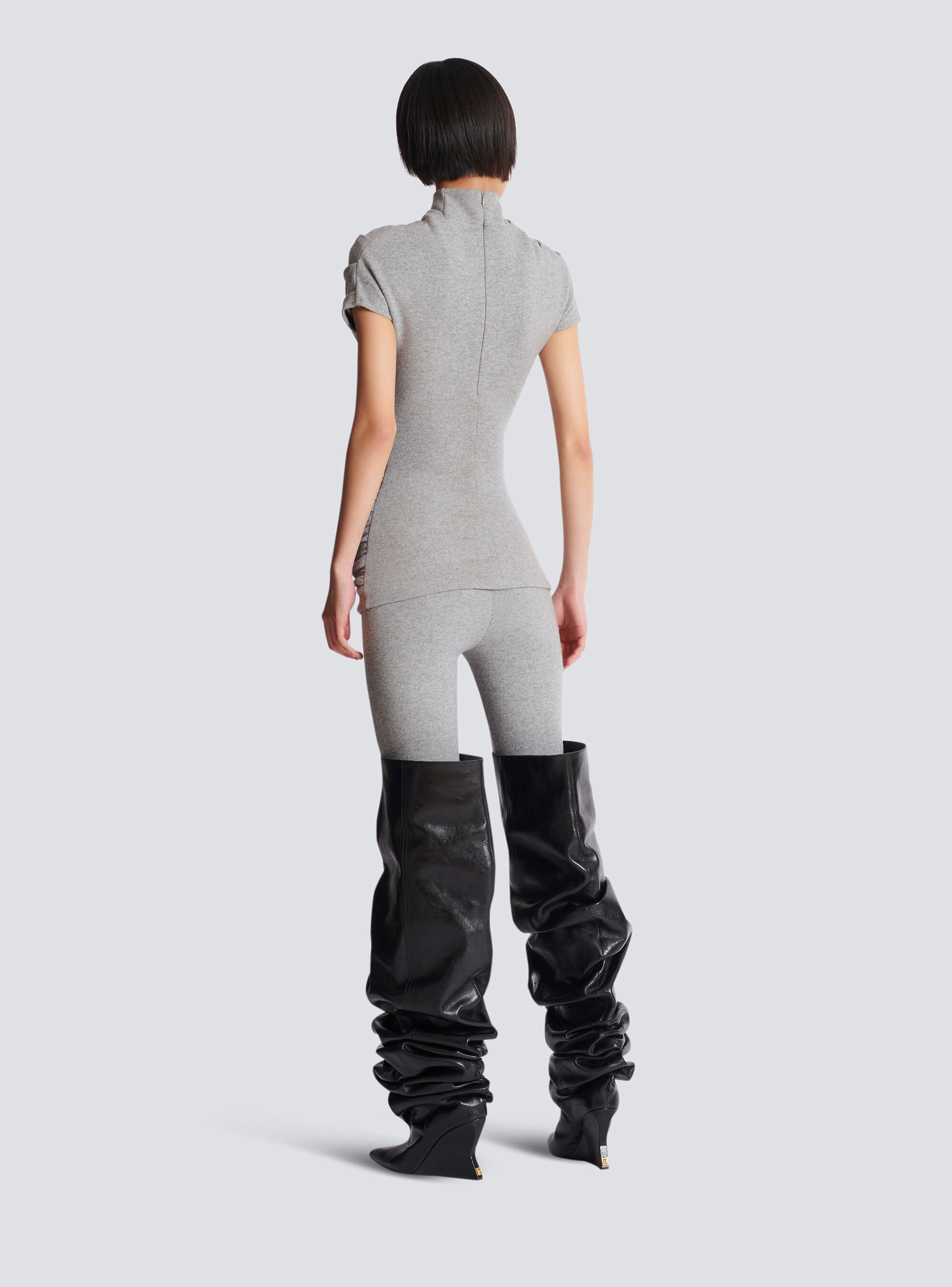 Драпированный топ из хлопкового трикотажа Balmain, серый