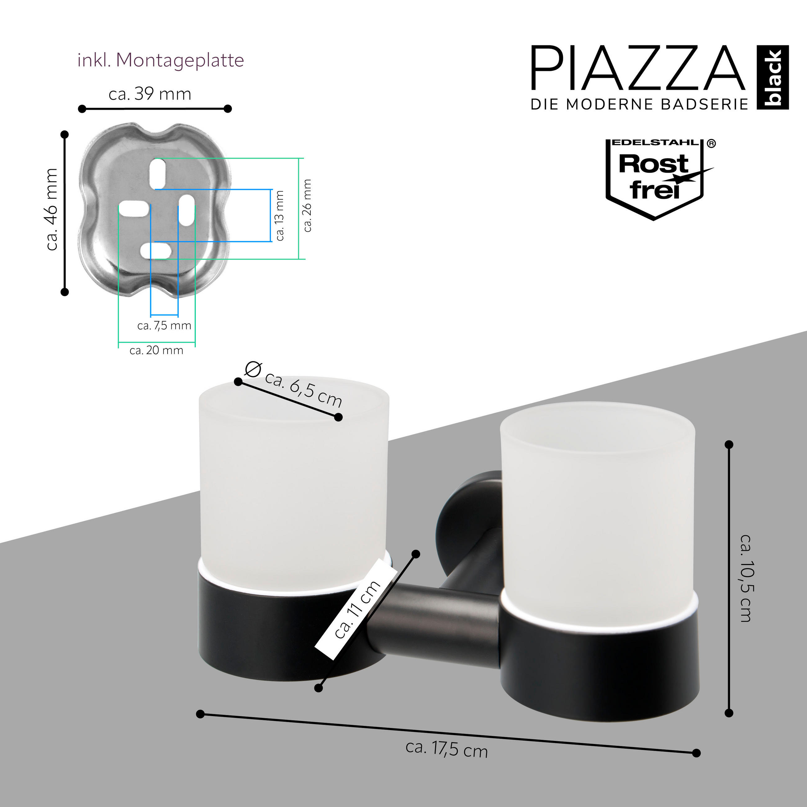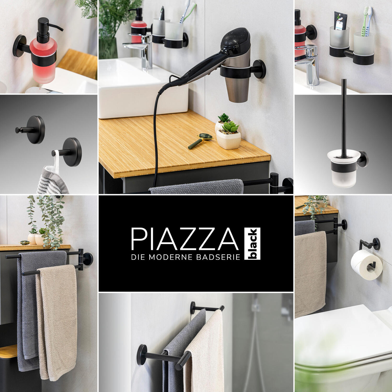 Серия PIAZZA BLACK от bremermann предлагает элегантные аксессуары для ванной комнаты из высококачественной нержавеющей стали черного цвета. Благодаря современному матовому дизайну изделия гармонично вписываются в любую ванную комнату, обеспечивая при этом долговечность и простоту в уходе. Изысканная атмосфера и функциональные решения, которые стильно украсят вашу ванную комнату - PIAZZA BLACK.