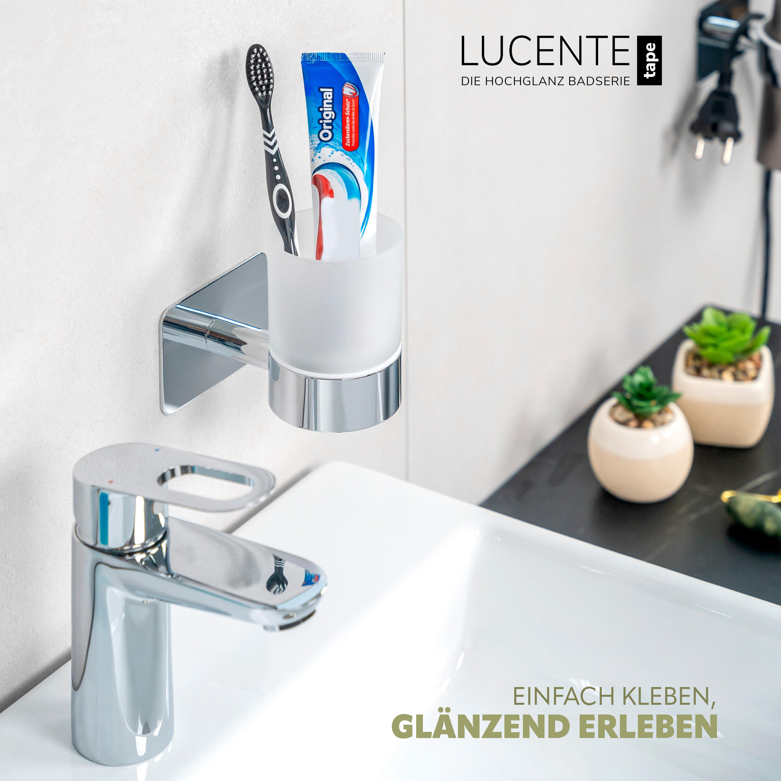 ОТКЛЕЙТЕ, ПРИКЛЕЙТЕ, ГОТОВО! Серия для ванной комнаты LUCENTE TAPE от bremermann сочетает в себе глянцевый дизайн из нержавеющей стали и инновационную клеевую технологию. Установка занимает менее 1 минуты - LUCENTE TAPE обеспечивает надежное и прочное крепление без сверления!