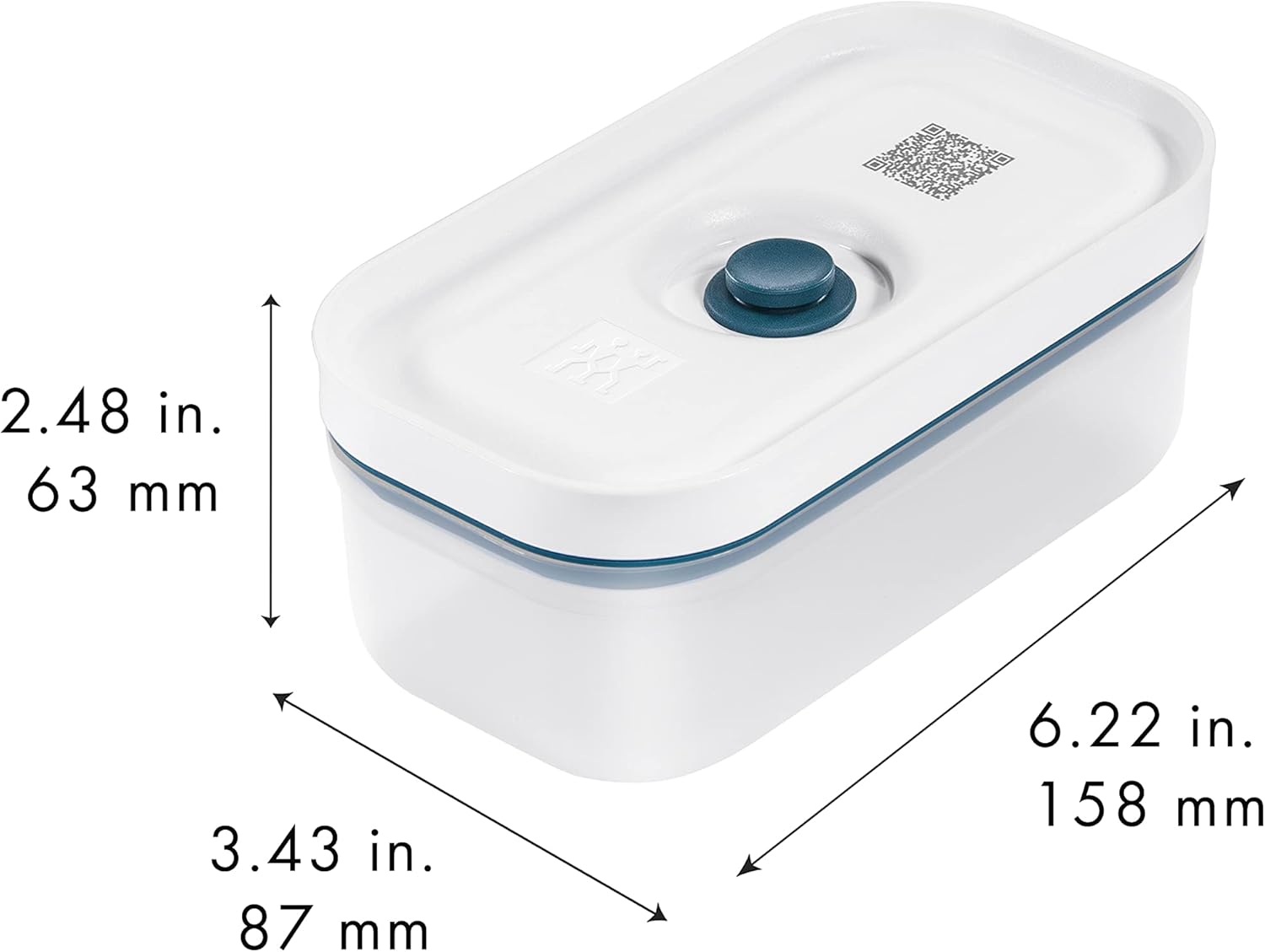 В КОМПЛЕКТ ВХОДИТ: 1 вакуумный бокс Zwilling, пластик, размер S (0,5 л, 16 x 9 x 6,5 см), полупрозрачный - La Mer, материал: пластик без BPA (крышка и контейнер), силикон (клапан и уплотнение).