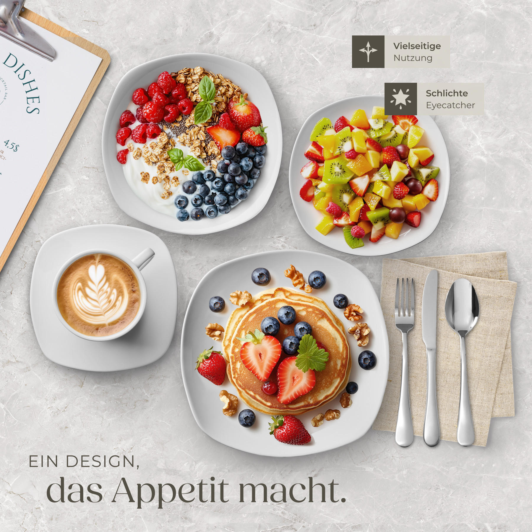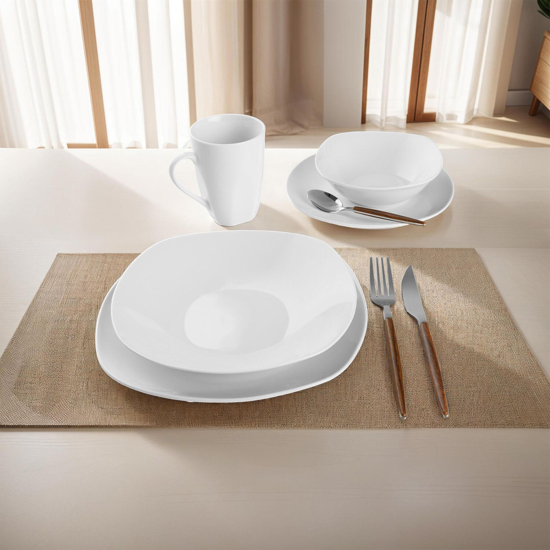 С набором посуды Salerno от tectake вы получаете универсальный комплект, который благодаря идеальному сочетанию квадратных и круглых форм станет настоящим украшением вашего обеденного стола.