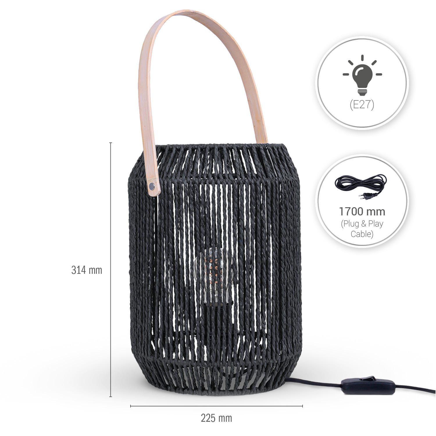 СВЕТИЛЬНИКИ: Ищете что-то особенное для своего дома? Тот самый аксессуар, который действительно сделает ваши четыре стены уютными и идеально дополнит ваш интерьер? Тогда вам понравятся эти модные настольные лампы. Благодаря современным цветовым вариациям в черном и белом или натуральных тонах, они быстро станут визуальной изюминкой вашей любимой комнаты. Лампы изготовлены из высококачественного дерева и стали и имеют изящно выполненный абажур в стиле плетения, который особенно прочен благодаря стальному каркасу. Лампы также поставляются с практичным кабелем (длина: 170 см) с выключателем - просто подключите его, и все готово. ПОТРЯСАЮЩИЙ ДИЗАЙН: Естественные, современные и модные, эти чудеса для дома можно сочетать с самыми модными стилями интерьера и быстро создать уютную атмосферу. Благодаря своему сдержанному дизайну, эти лампы умело подчеркивают вашу мебель, а также обеспечивают уникальное, яркое рассеянное освещение, игриво разбавленное плетеной структурой, создавая восхитительную игру света и тени без неприятного блика. Это делает их идеальным аксессуаром для спальни, столовой и гостиной, будь то современный скандинавский стиль, креативный бохо-шик или деревенский индустриальный стиль. ТЕХНИЧЕСКИЕ ХАРАКТЕРИСТИКИ: Настольная лампа с цоколем E27, кабель Plug-and-Play (170 см) с выключателем, вес одной версии: 0,65 - 0,91 кг, 220-240 В, 50/60 Гц, максимальная температура окружающей среды: 40°C, цоколь E27. Гарантия на лампу 5 лет.