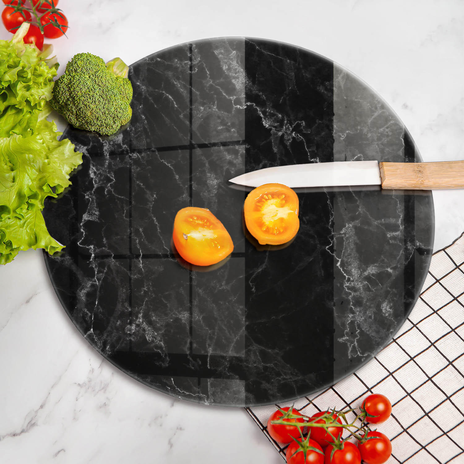 Для современных, классических, скандинавских и деревенских кухонь. Идеально подходит для нарезки овощей, мяса, хлеба, фруктов или в качестве стильного сервировочного блюда для кофе, завтрака или ужина. Также идеально подходит в качестве подарка на новоселье, свадьбу или день рождения. Круглая стеклянная тарелка Ø40, круглая стеклянная разделочная доска, стеклянная кухонная тарелка с рисунком, стеклянная разделочная доска, стеклянная подставка под горячее, современные кухонные аксессуары, стеклянная сервировочная тарелка, современный декор для кухни, стеклянная доска для завтрака, кухонный подарок, защита столешницы, украшение для кухни, высококачественная кухонная тарелка