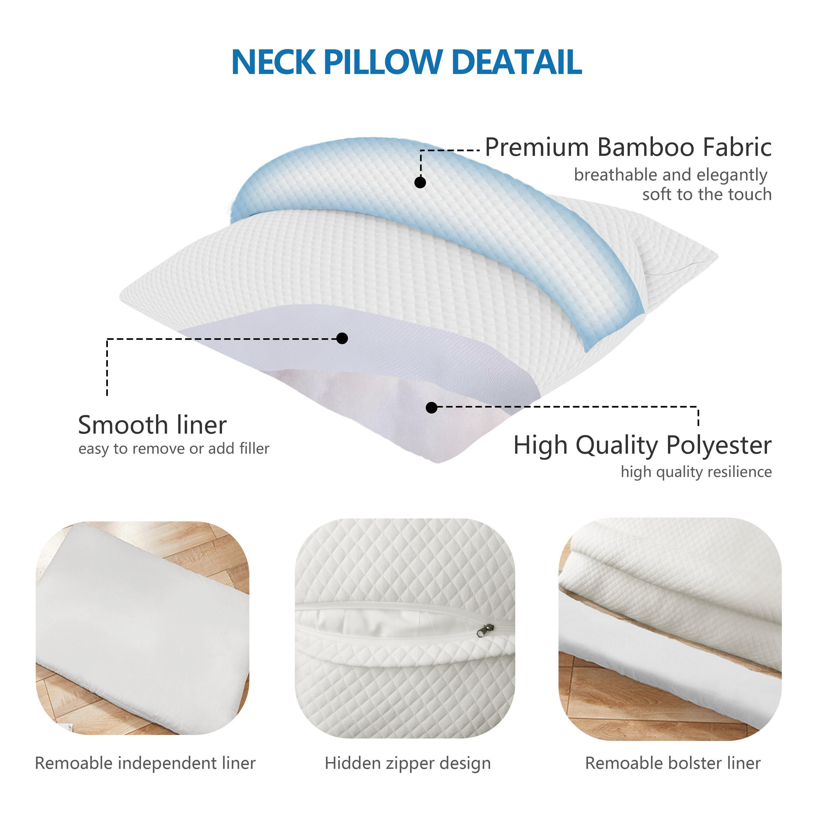 - Особенности: 1. Защита шеи и надежная поддержка 2. Материал из бамбукового волокна, дышащий и не душный 3. Съемная наволочка для удобного ежедневного ухода 4. Универсальное использование