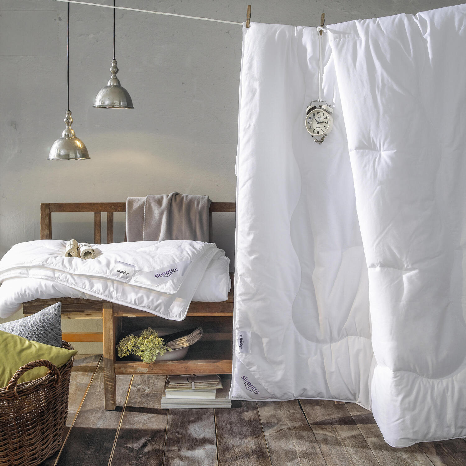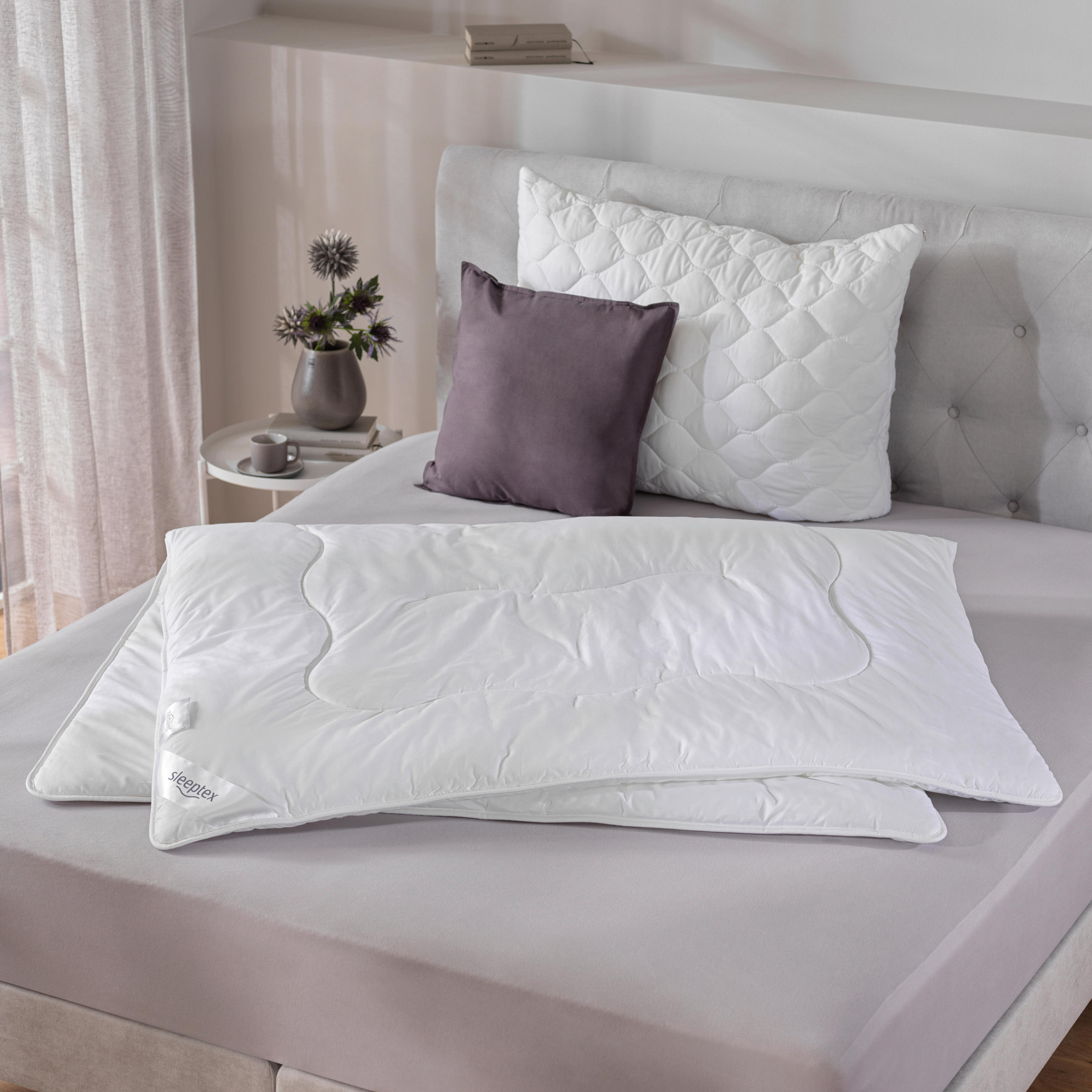 Как можно поднять этот комфорт на еще более высокий уровень? Просто: одеяла и подушки Sleeptex, а также наматрасники, изготовлены из дышащего тенселя, простых в уходе синтетических волокон и натуральных материалов, регулирующих температуру. При выборе следует также учитывать ваш личный тепловой комфорт и время года. В то время как пуховое одеяло с кашемировым чехлом обеспечивает приятное тепло зимой, легкое шелковое одеяло летом дарит приятное ощущение прохлады в жаркие дни. Мы предлагаем лучшее для любых условий сна - таков девиз Sleeptex.