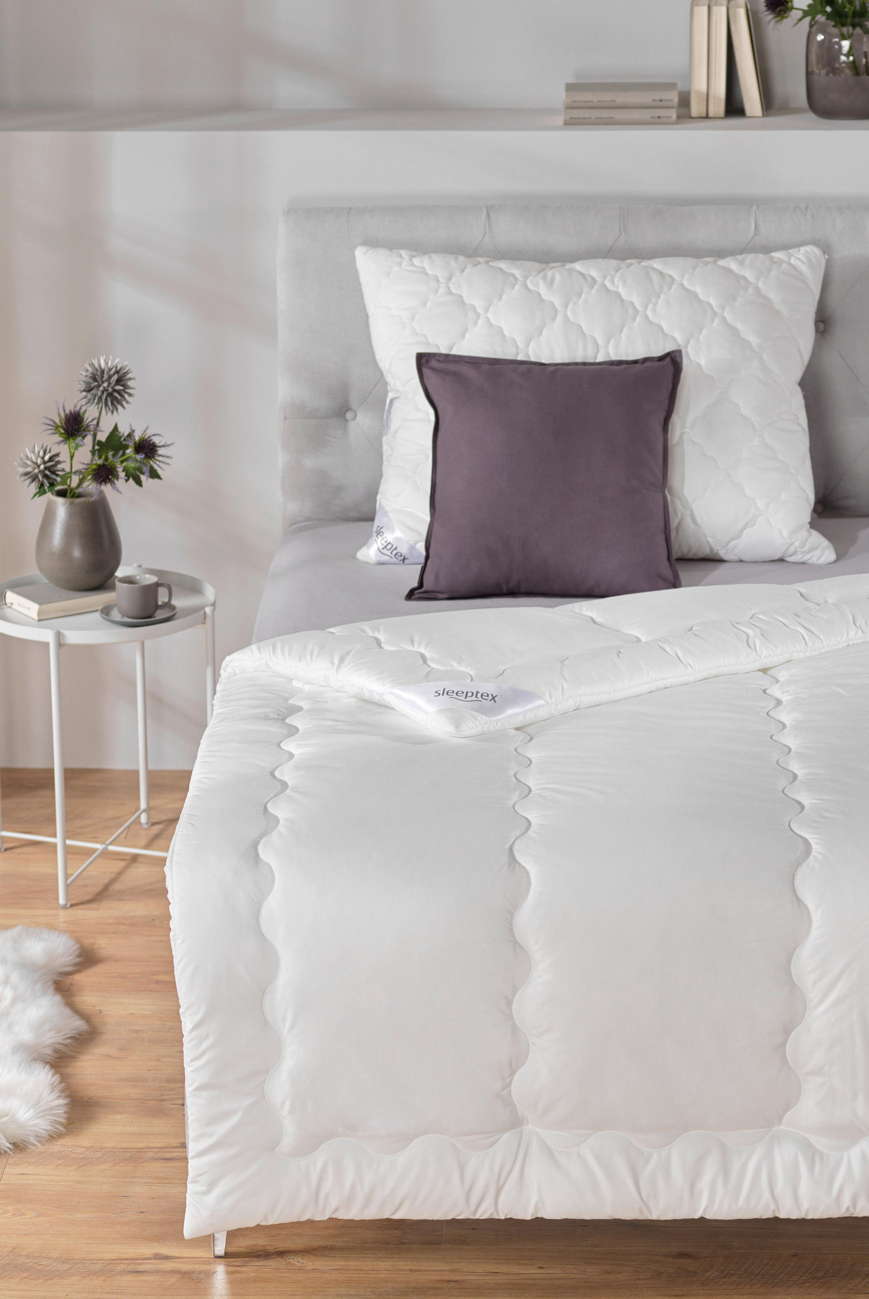 Как можно поднять этот комфорт на еще более высокий уровень? Просто: одеяла и подушки Sleeptex, а также наматрасники, изготовлены из дышащего тенселя, простых в уходе синтетических волокон и натуральных материалов, регулирующих температуру. При выборе следует также учитывать ваш личный тепловой комфорт и время года. В то время как пуховое одеяло с кашемировым чехлом обеспечивает приятное тепло зимой, легкое шелковое одеяло летом дарит приятное ощущение прохлады в жаркие дни. Мы предлагаем лучшее для любых условий сна - таков девиз Sleeptex.