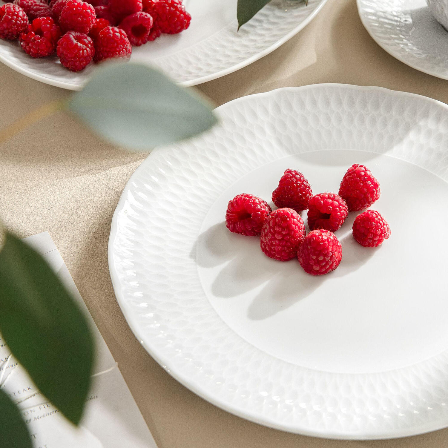 Коллекция фарфора SOFIA - это сочетание классической и вневременной элегантности, представленное в двух уникальных вариантах: белом и расписанном вручную тонкой линией настоящего золота. Характерной чертой этой коллекции являются едва заметные бороздки, напоминающие каплю, которые придают ей неповторимый шарм и подчеркивают изысканный стиль. Каждое изделие изготовлено из высококачественного европейского твердого фарфора, отличающегося тщательной обработкой. Белый вариант коллекции впечатляет своей простотой и универсальностью, органично вписываясь в различные сервировки стола. Более того, белые изделия чрезвычайно практичны - их можно мыть в посудомоечной машине и использовать в микроволновой печи, что делает их идеальным выбором для повседневного использования. Вариант, украшенный золотыми линиями, привнесет нотку роскоши и престижа в любой интерьер, добавив праздничного настроения любому застолью. Для сохранения красоты и долговечности золотого декора рекомендуется мыть изделия вручную и не использовать их в микроволновой печи. Внимание к деталям, таким как тонкие рельефы и элегантные контуры, придает фарфору SOFIA исключительную изысканность. Эта коллекция подходит как для повседневных обедов, так и для праздничных случаев, добавляя нотку элегантности и стиля.
