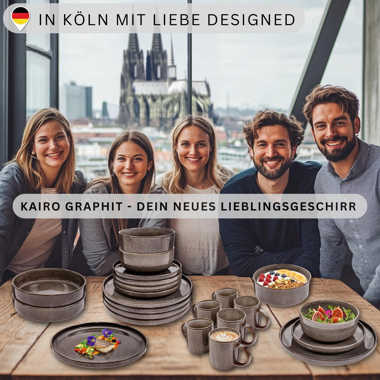 Контрастный стиль для вашего обеденного стола: набор посуды Cairo Graphite из 24 предметов