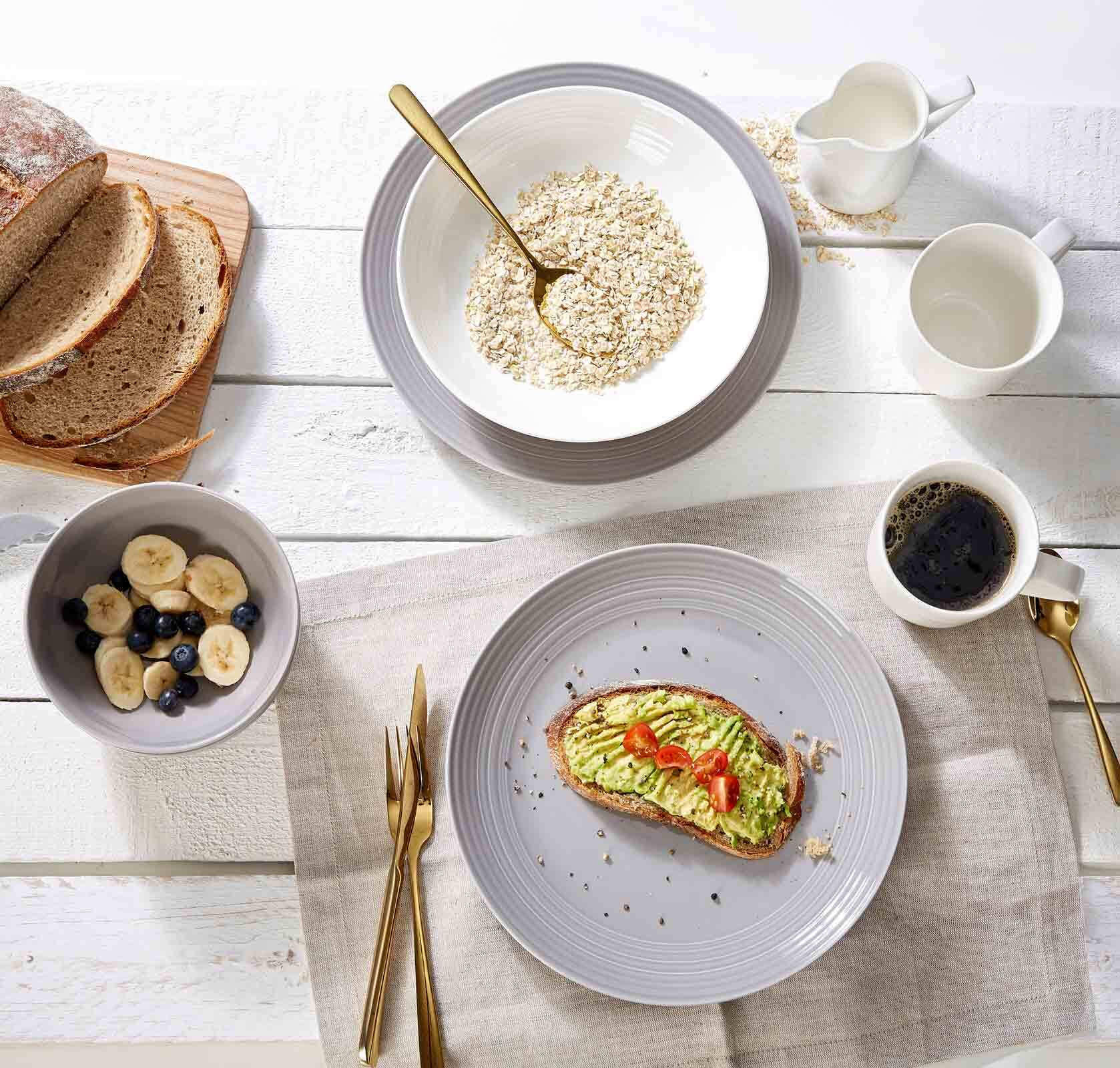 Изысканное очарование: Благодаря приятной сдержанной эстетике, достигнутой за счет гармоничных, простых форм и мягких цветов, набор посуды "Levi" сопровождает нас исключительным стилем в течение всего дня и радует глаз за каждым приемом пищи. Тонкие рельефные полосы, проходящие вдоль верхнего и внешнего краев предметов, придают минималистичному дизайну естественную деревенскую изысканность, идеально дополняя его как визуально, так и на ощупь. Набор «Levi» одинаково хорошо впишется как в скандинавский загородный дом, так и в городской индустриальный лофт, а его тональное сочетание серого, синего, кремового и белого создает ощущение непринужденности и гарантированно поднимает настроение.