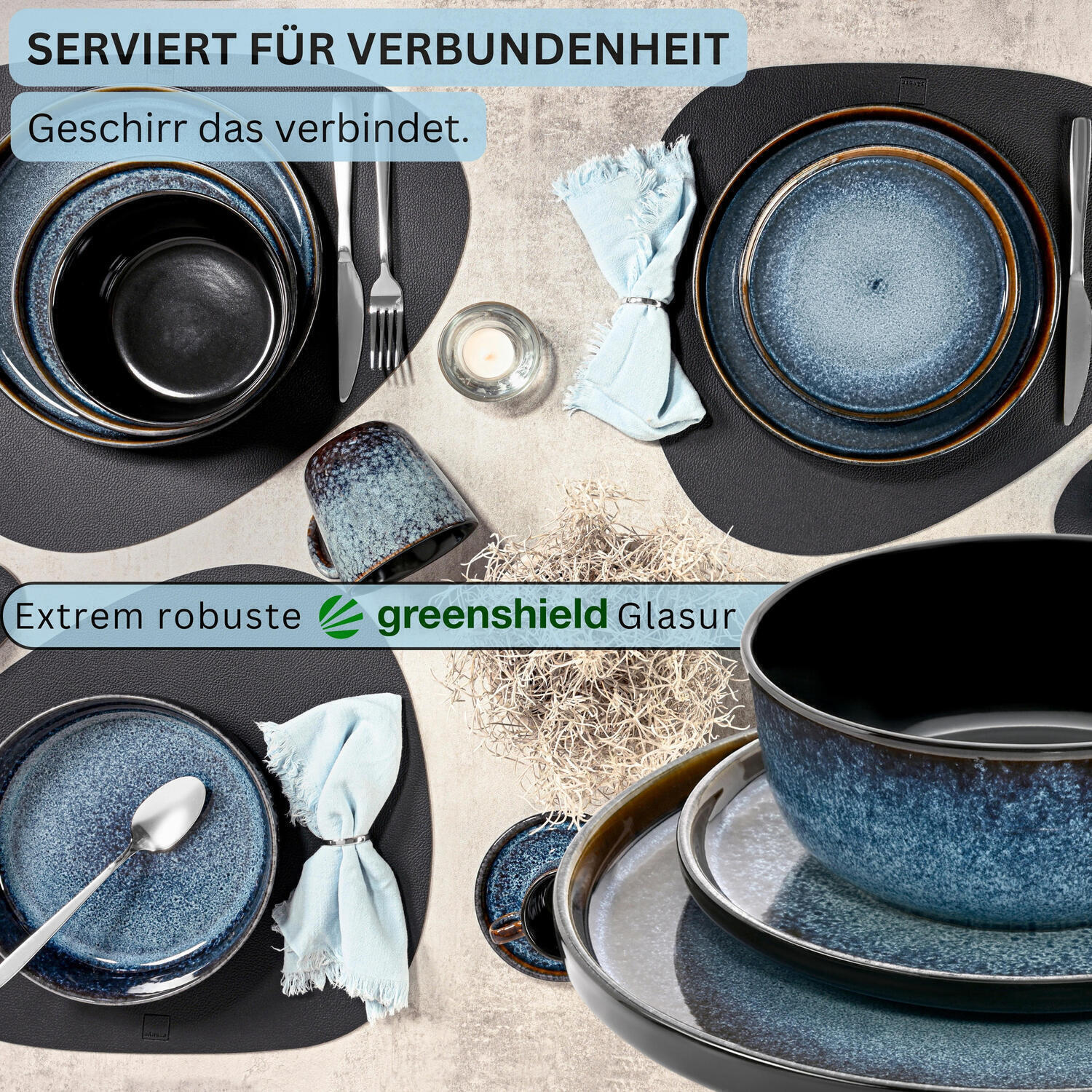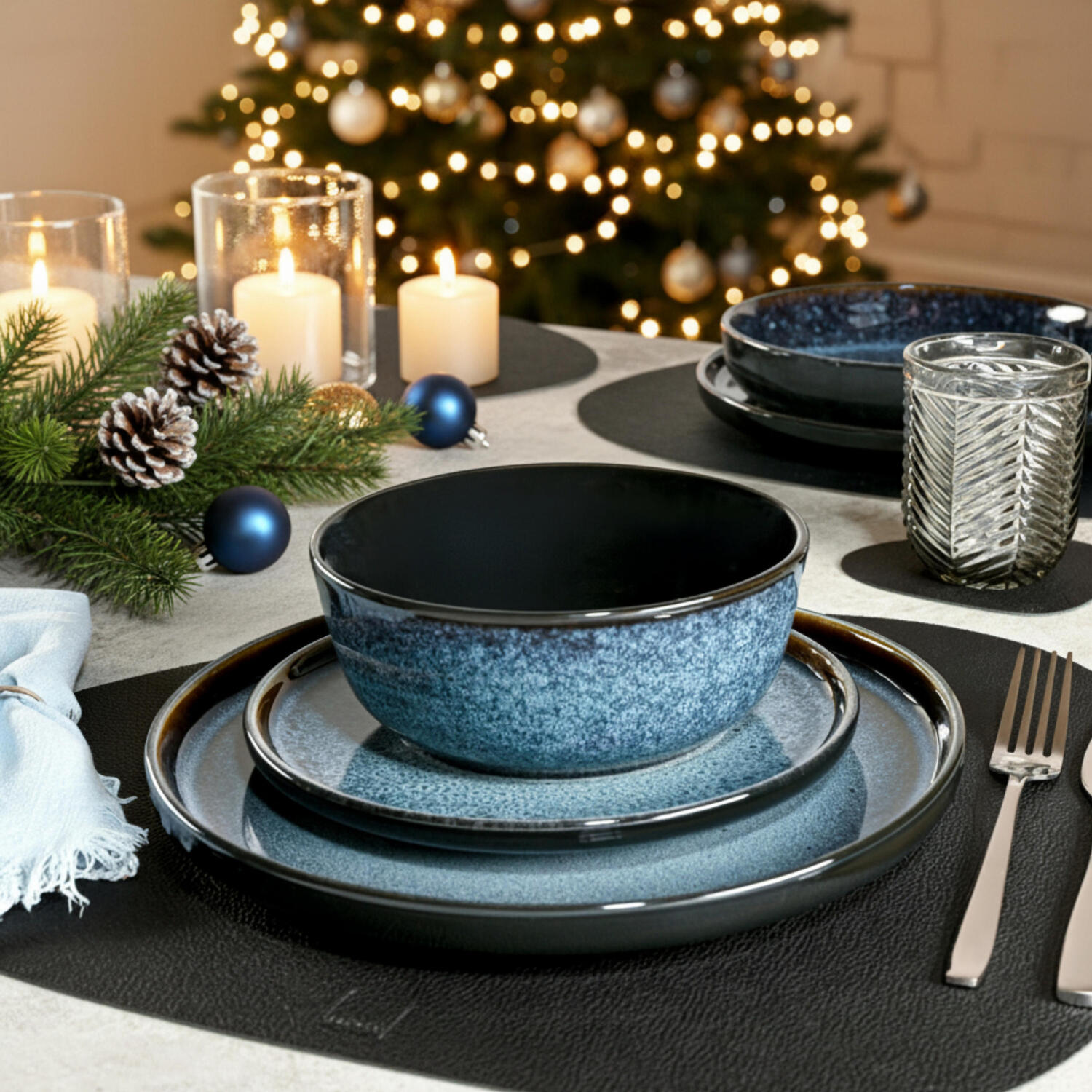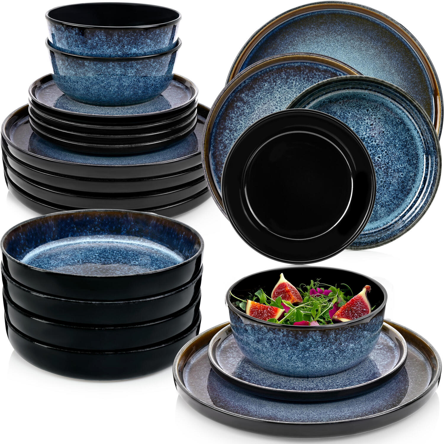 Посуда высшего качества: устойчива к царапинам, подходит для мытья в посудомоечной машине и использования в микроволновой печи. Идеально подходит для повседневного использования без ущерба для высокого качества и эстетики - ваш обеденный стол надолго останется центром внимания. СОВРЕМЕННЫЙ ШАРМ С ДУШОЙ РУЧНОЙ РАБОТЫ Естественная текстура керамики в сочетании с чистыми линиями и яркими цветами делает этот набор идеальным дополнением для любого случая - будь то ужин с друзьями, семейные обеды или стильно сервированные повседневные блюда. В КОМПЛЕКТ ВХОДИТ: • 6 обеденных тарелок - диаметр: 26,5 см • 6 десертных тарелок - диаметр: 20,3 см • 6 мисок - диаметр x высота: 16,2 см x 6,4 см - объем: 550 мл • 6 мисок для пасты - диаметр x высота: 22 см x 4,5 см - объем: 800 мл