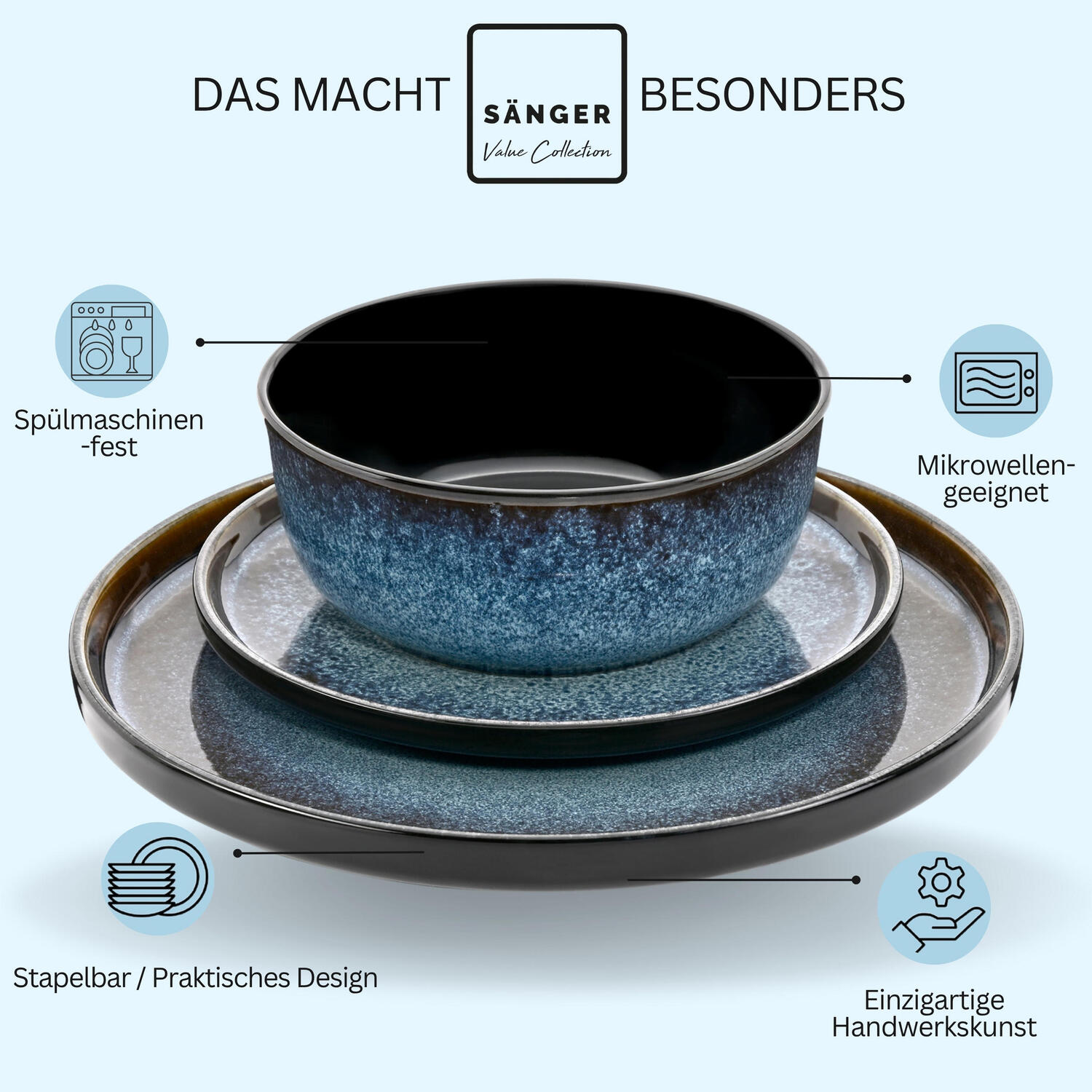 Откройте для себя современную сторону Японии с набором посуды из 24 предметов из коллекции Sänger Value. Вдохновленный городским образом жизни прибрежного города Осака, этот набор посуды сочетает в себе чистый, глубокий синий цвет с тонкой черной каймой. Он отражает культурную глубину, разнообразие и динамизм города, где традиции и инновации органично сочетаются.