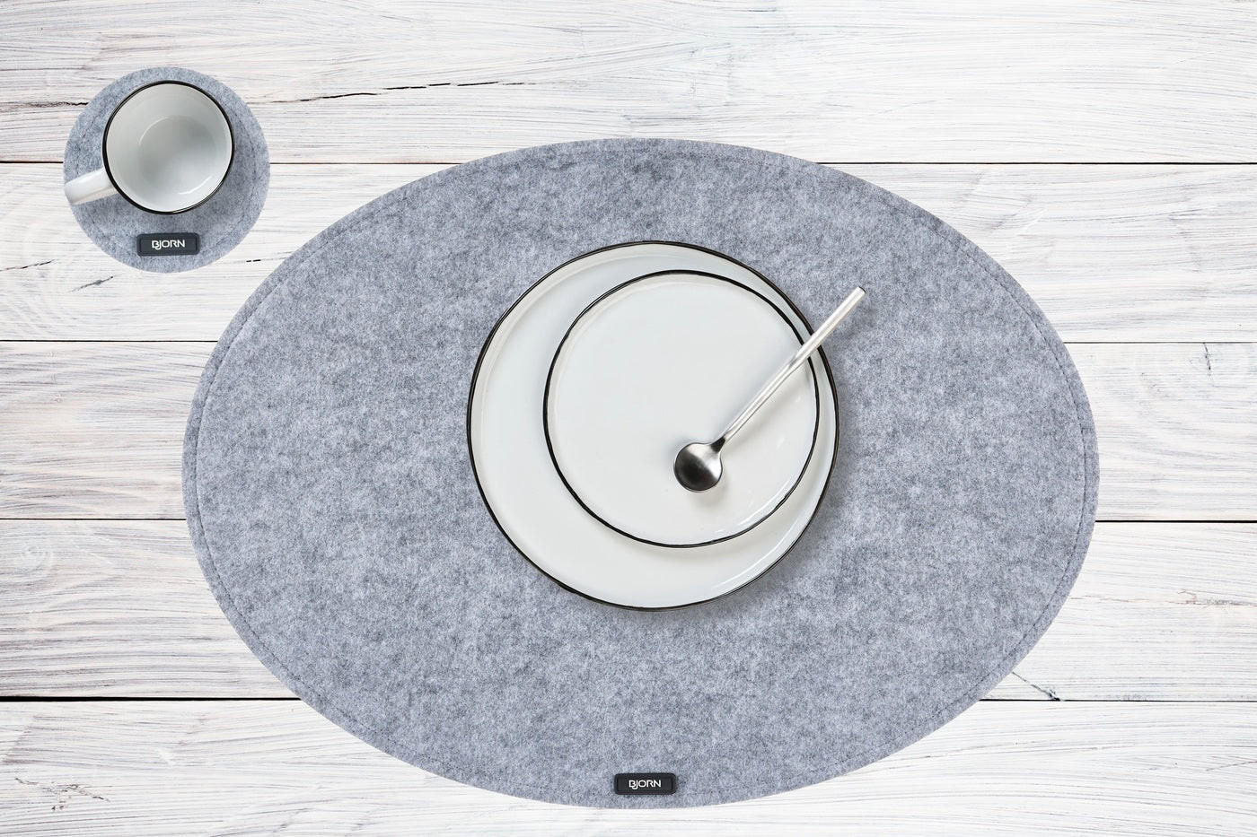 Эти подставки под стаканы из переработанного серого войлока отличаются мягкой, естественной эстетикой, которая органично вписывается в различные стили интерьера. Защищая поверхности от пятен и царапин, эти подставки добавят нотку современного эко-шика. Они имеют приятную, комфортную текстуру и органичный вид. Изготовленные из 100% переработанных, экологически чистых материалов, эти подставки идеально подходят для повседневного использования или особых случаев, как в помещении, так и на открытом воздухе. Они обладают терморегулирующими свойствами, поглощая и рассеивая тепло или холод. Выберите экологичное и функциональное решение для декора с этими прочными подставками, чтобы создать уютную атмосферу. В наличии также имеются подходящие салфетки для сервировки стола.