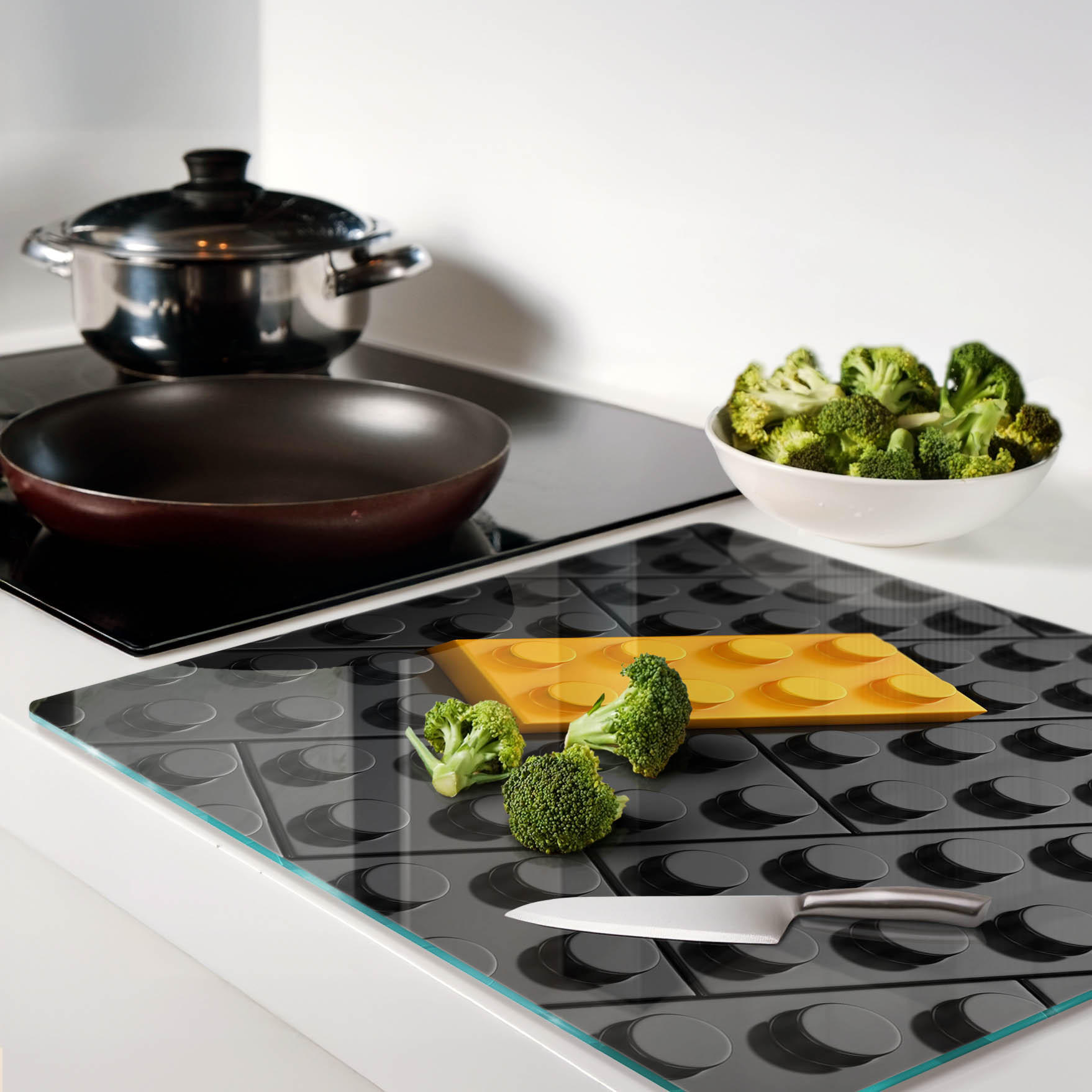 - Прочная конструкция этой крышки для варочной панели (толщина 4 мм) обеспечивает не только длительный срок службы, но и удобство при нарезке, измельчении и приготовлении пищи.