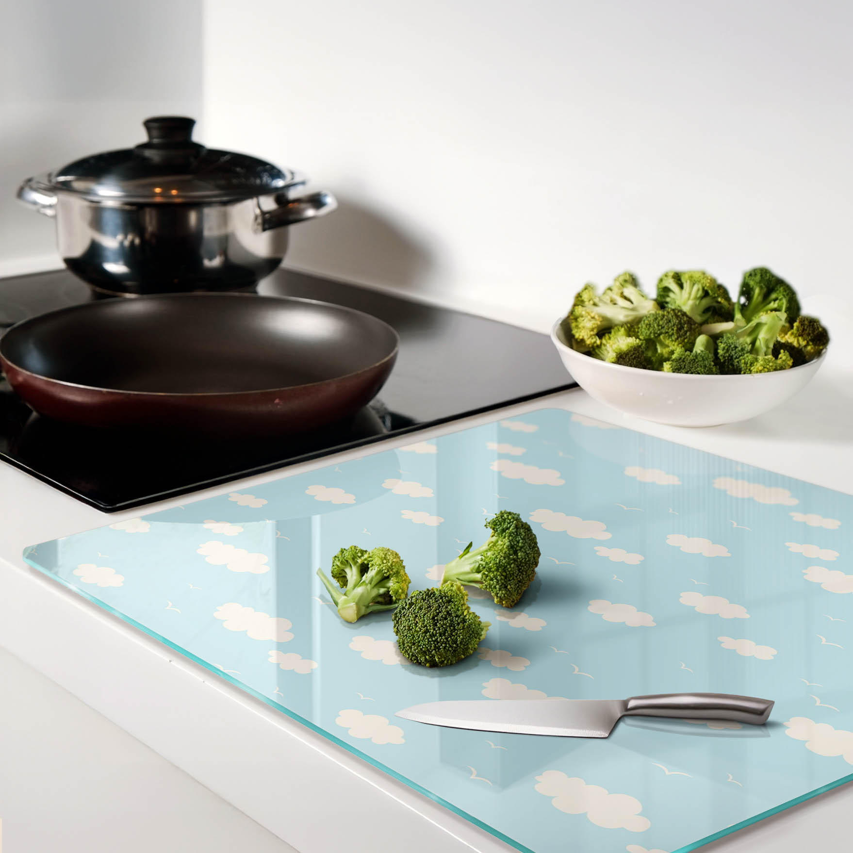 - Прочная конструкция этой крышки для варочной панели (толщина 4 мм) обеспечивает не только длительный срок службы, но и удобство при нарезке, измельчении и приготовлении пищи.