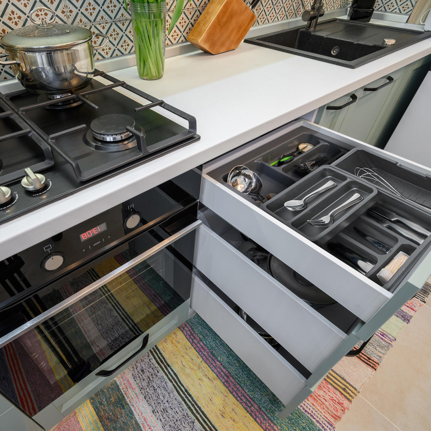 Регулируемый органайзер для столовых приборов в ящики