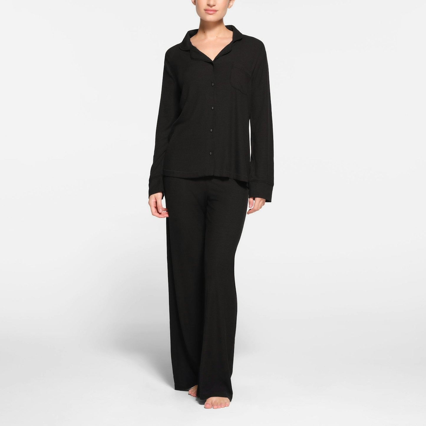Классический топ и подходящие к нему брюки — идеальный комплект пижамы. Изготовленные из ультрамягкого ребристого полотна модал, топ и брюки для сна представляют собой лёгкий и комфортный вариант для сна и отдыха дома.