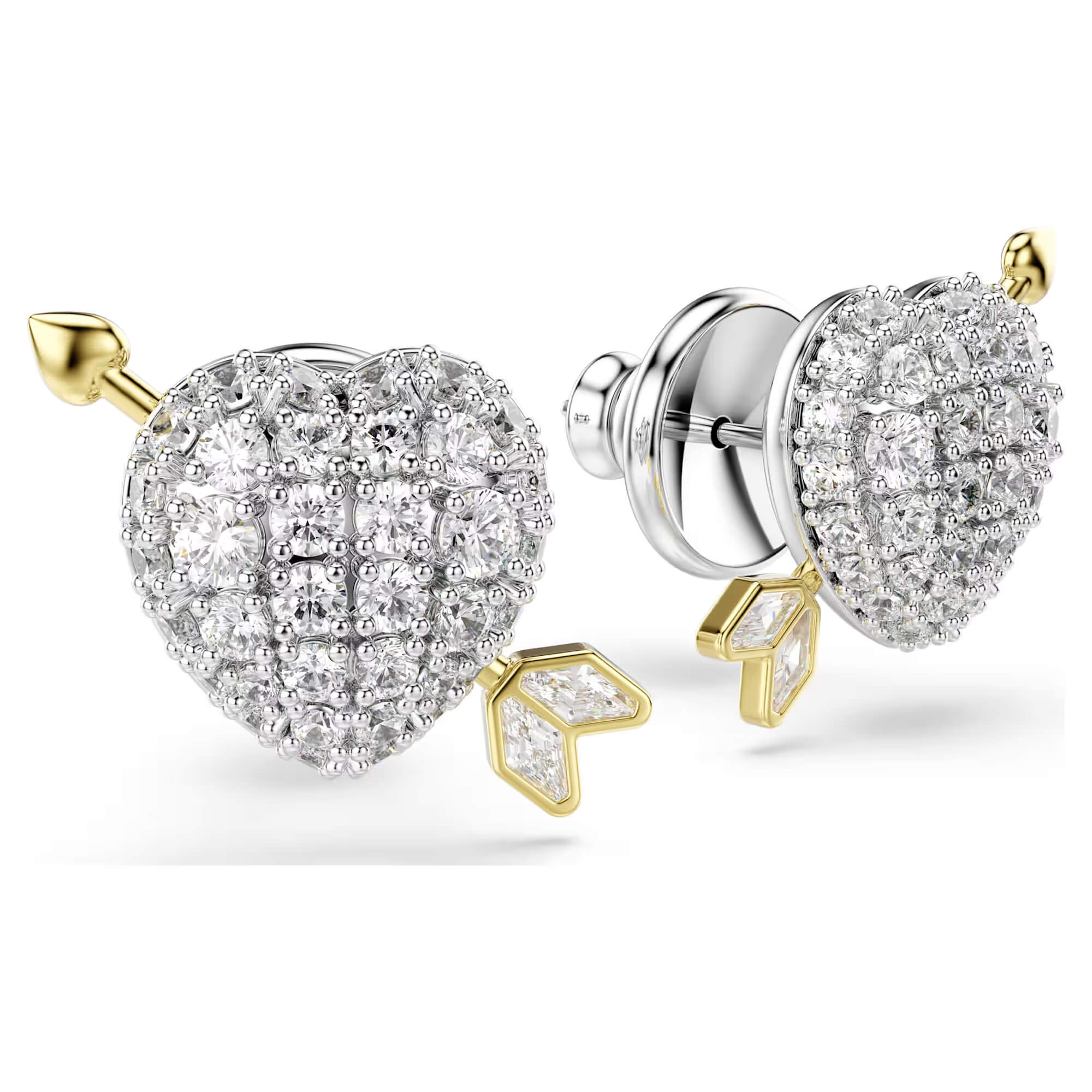 Отпразднуйте настоящую любовь с этими серьгами-гвоздиками в форме сердца из коллекции Idyllia. Каждая серьга представляет собой родированное сердечко, сверкающее цирконами Swarovski и пронзённое позолоченной стрелой Амура. Сдержанный, но выразительный способ подчеркнуть ваш личный стиль.