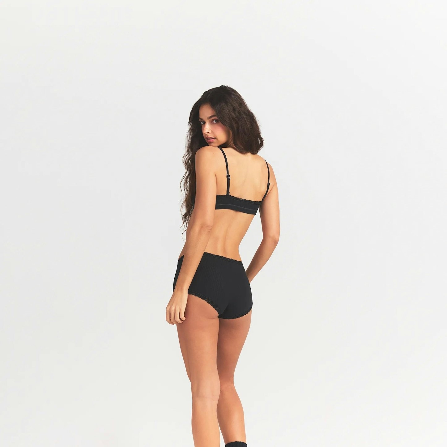 Кружевная отделка по линии талии и низу штанин