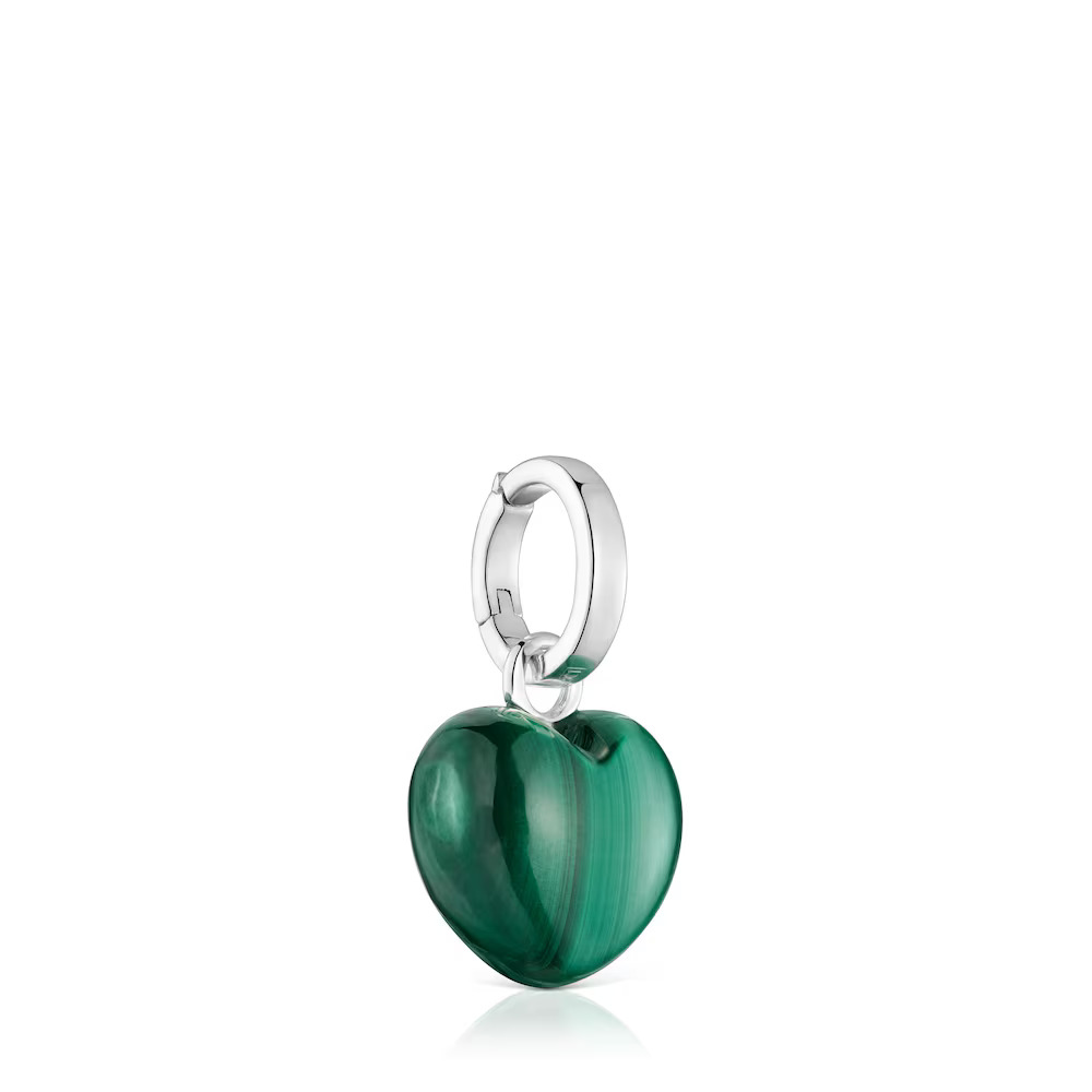 Кулон TOUS Flechazo из стерлингового серебра с огранённым камнем малахитом в форме сердца. Размер кулона: 12 мм. Данный товар не включает цепочку.