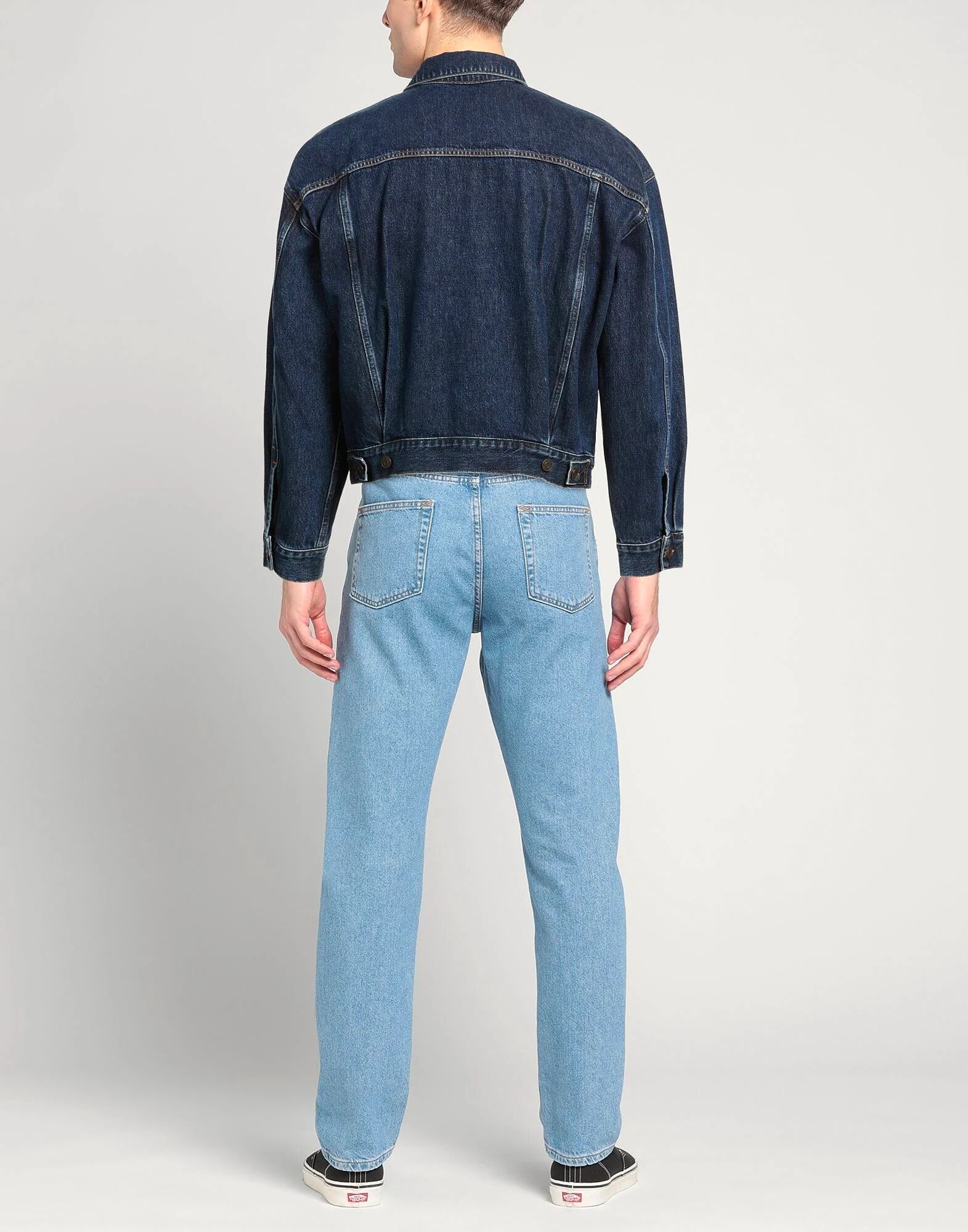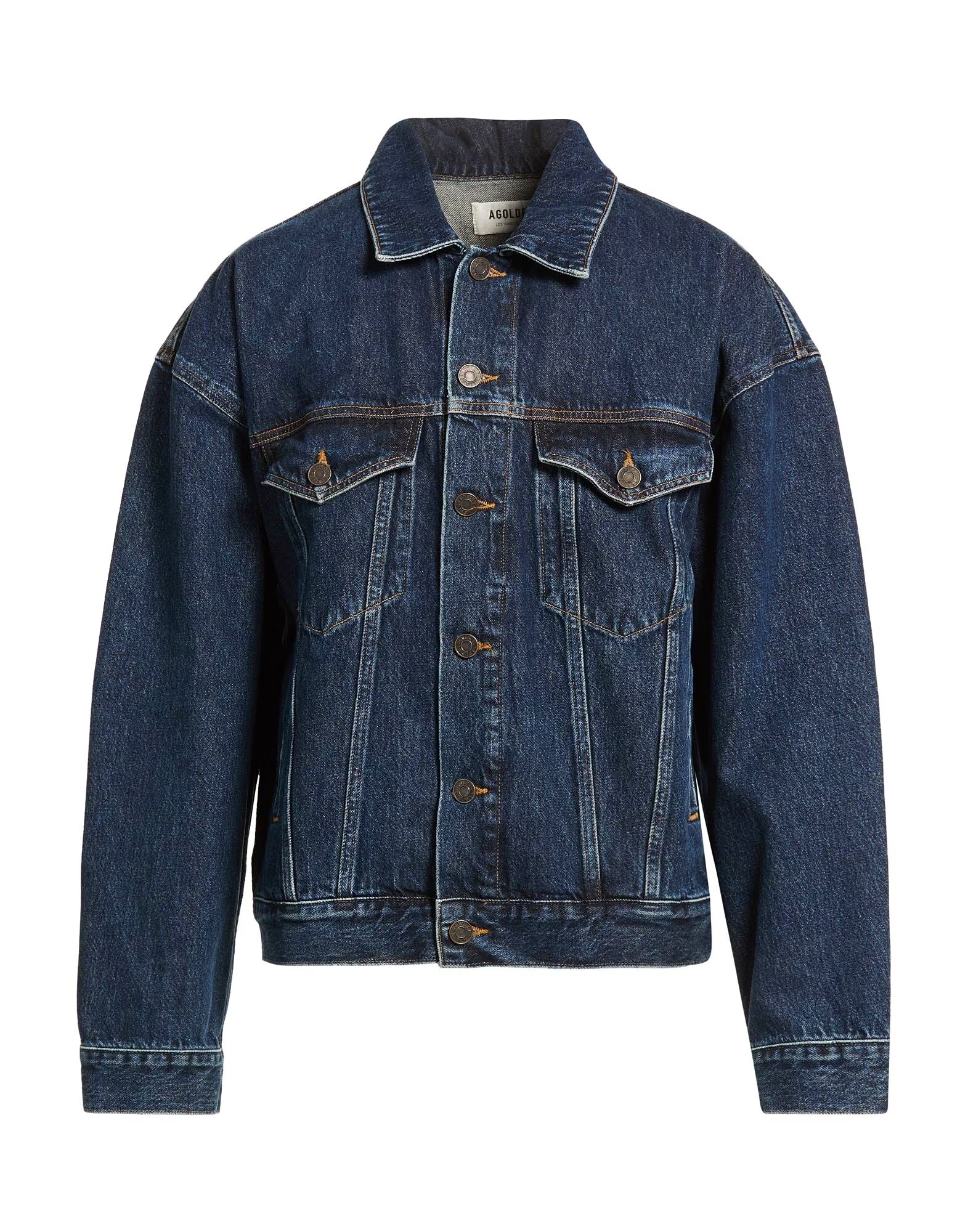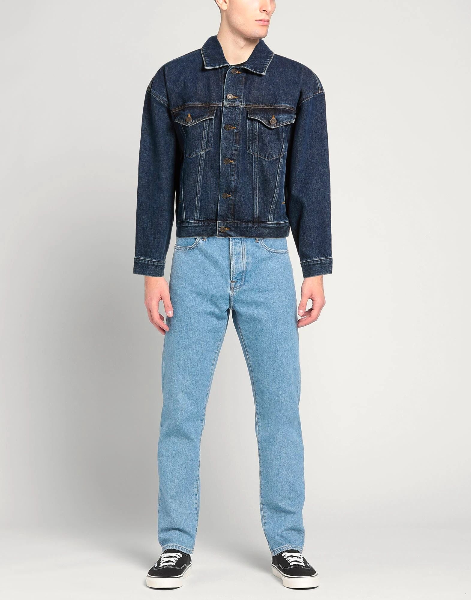 Джинсовая куртка-тракер, джинсовая ткань, однотонная, без аппликаций, темный цвет, длинные рукава, без подкладки, застежка на пуговицы, прорезные карманы, два нагрудных кармана, машинная стирка, не отбеливать, сушить в сушилке