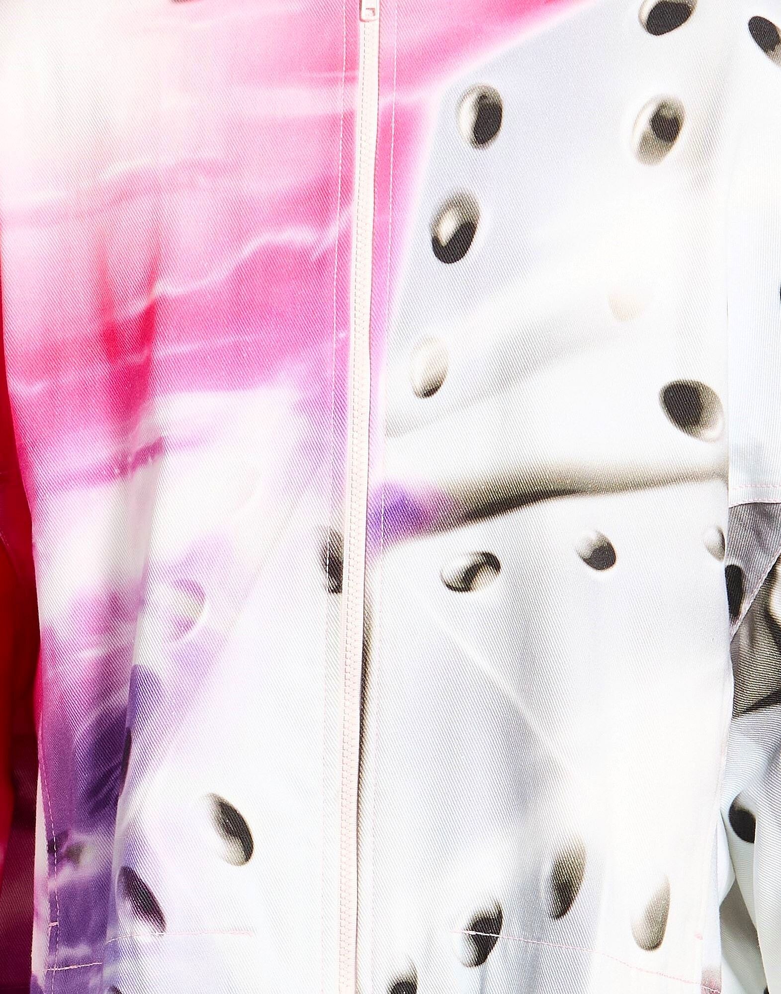 Джинсовая куртка, джинсовая ткань, без аппликаций, многоцветная, цветная стирка, длинные рукава, без подкладки, застежка на молнию, прорезной карман, машинная стирка или химчистка, не отбеливать, не сушить в сушильной машине