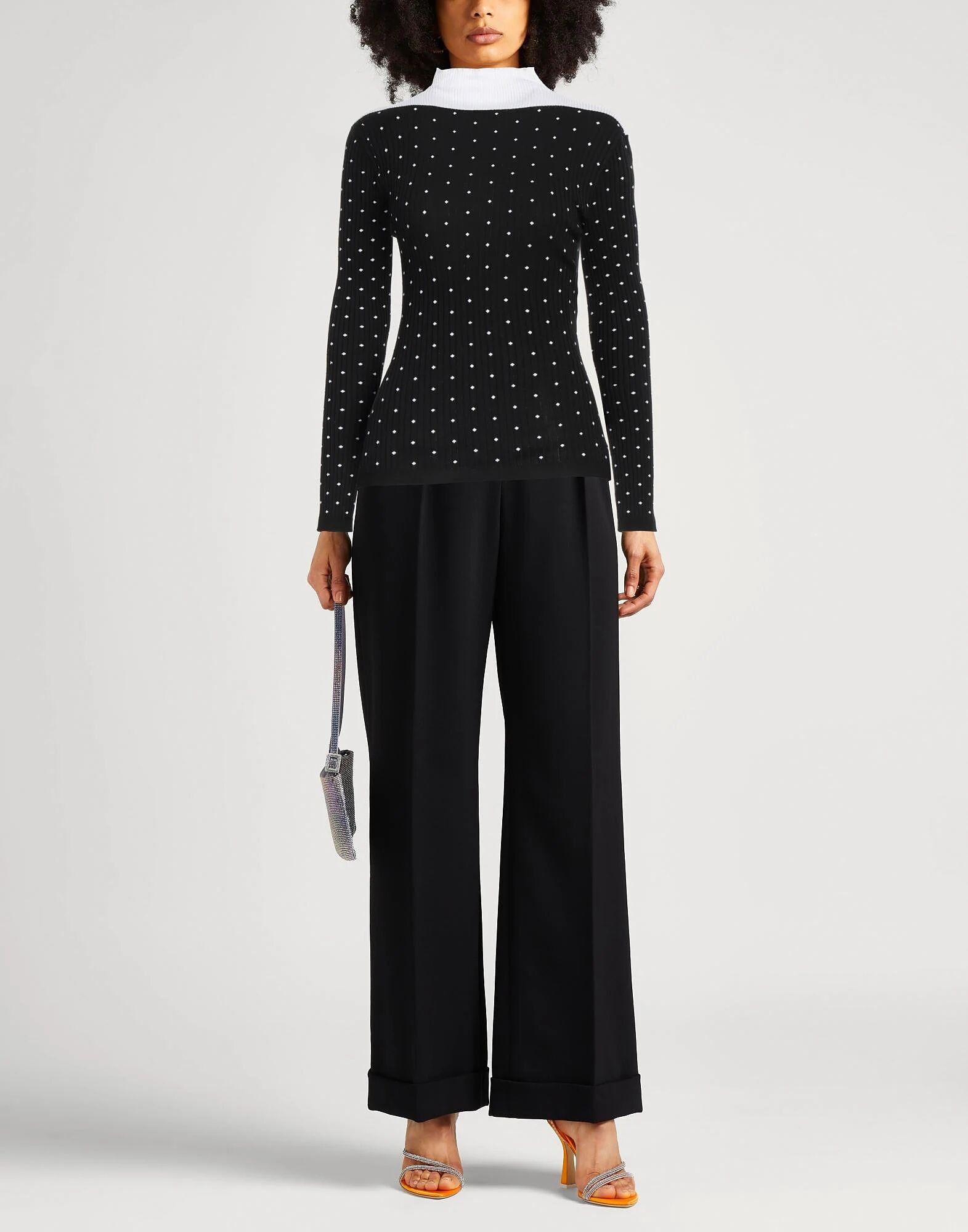 Вязаное изделие средней плотности, без аппликаций, двухцветное, с высоким воротником, длинные рукава, ручная стирка, не отбеливать, не сушить в сушильной машине