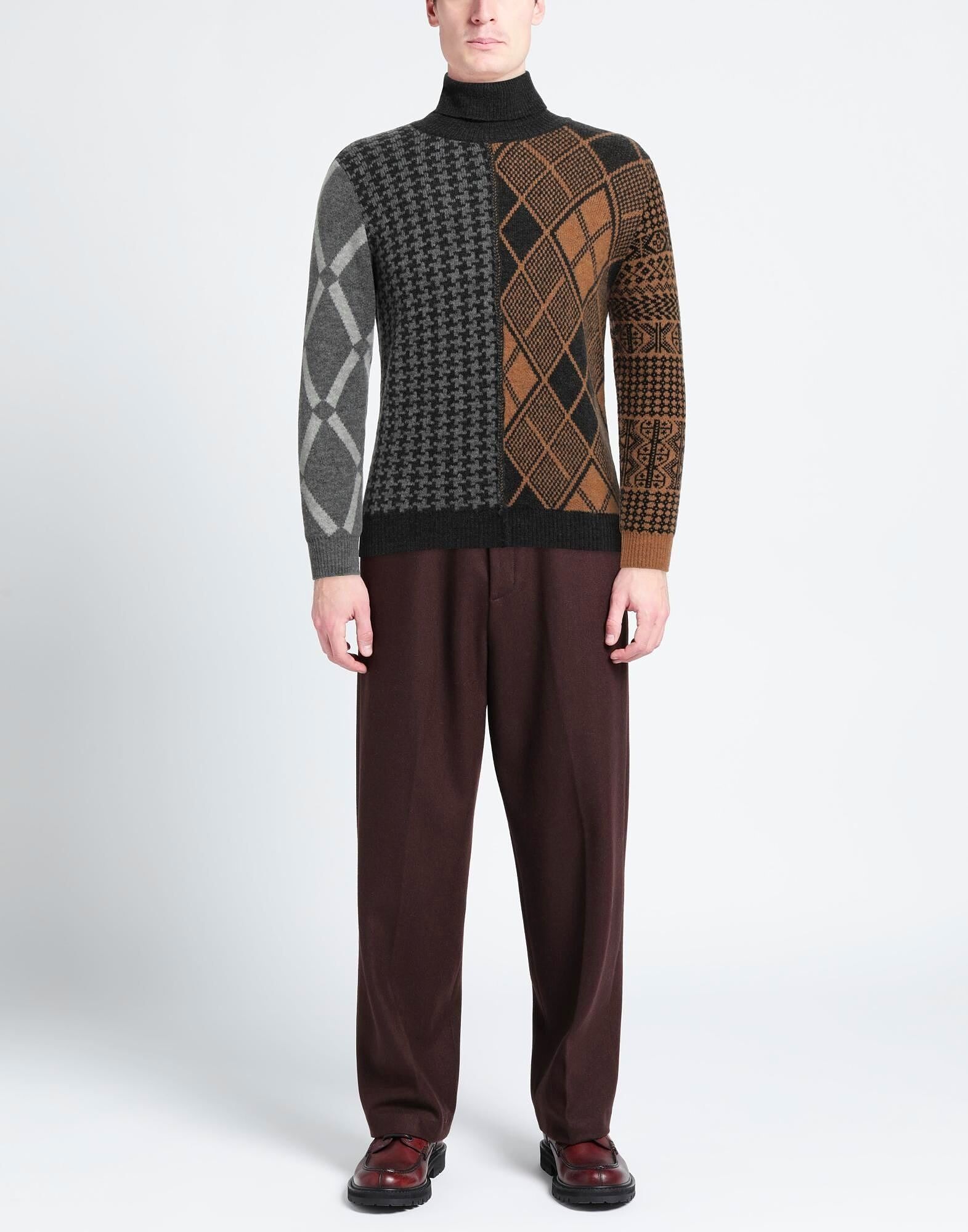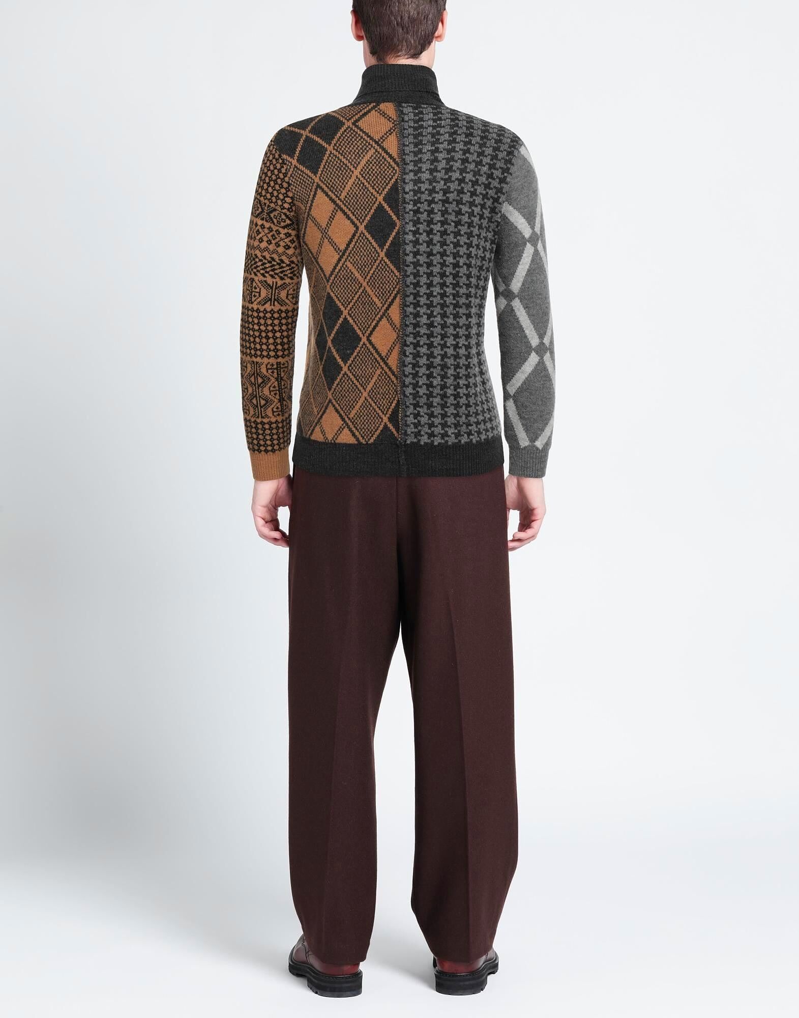 Вязаное изделие средней плотности, без аппликаций, в стиле пэчворк, с высоким воротником, длинными рукавами, ребристыми манжетами, без карманов