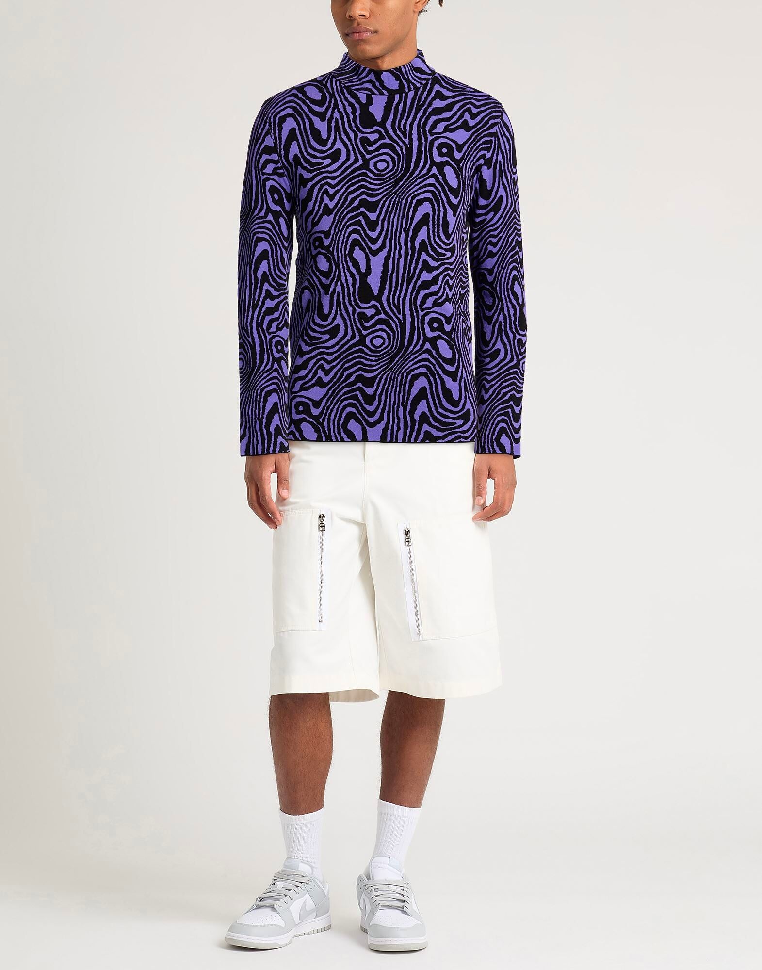 Жаккардовая вязка, средней плотности, без аппликаций, двухцветная, воротник-стойка, длинные рукава, химчистка, не отбеливать, не сушить в сушильной машине