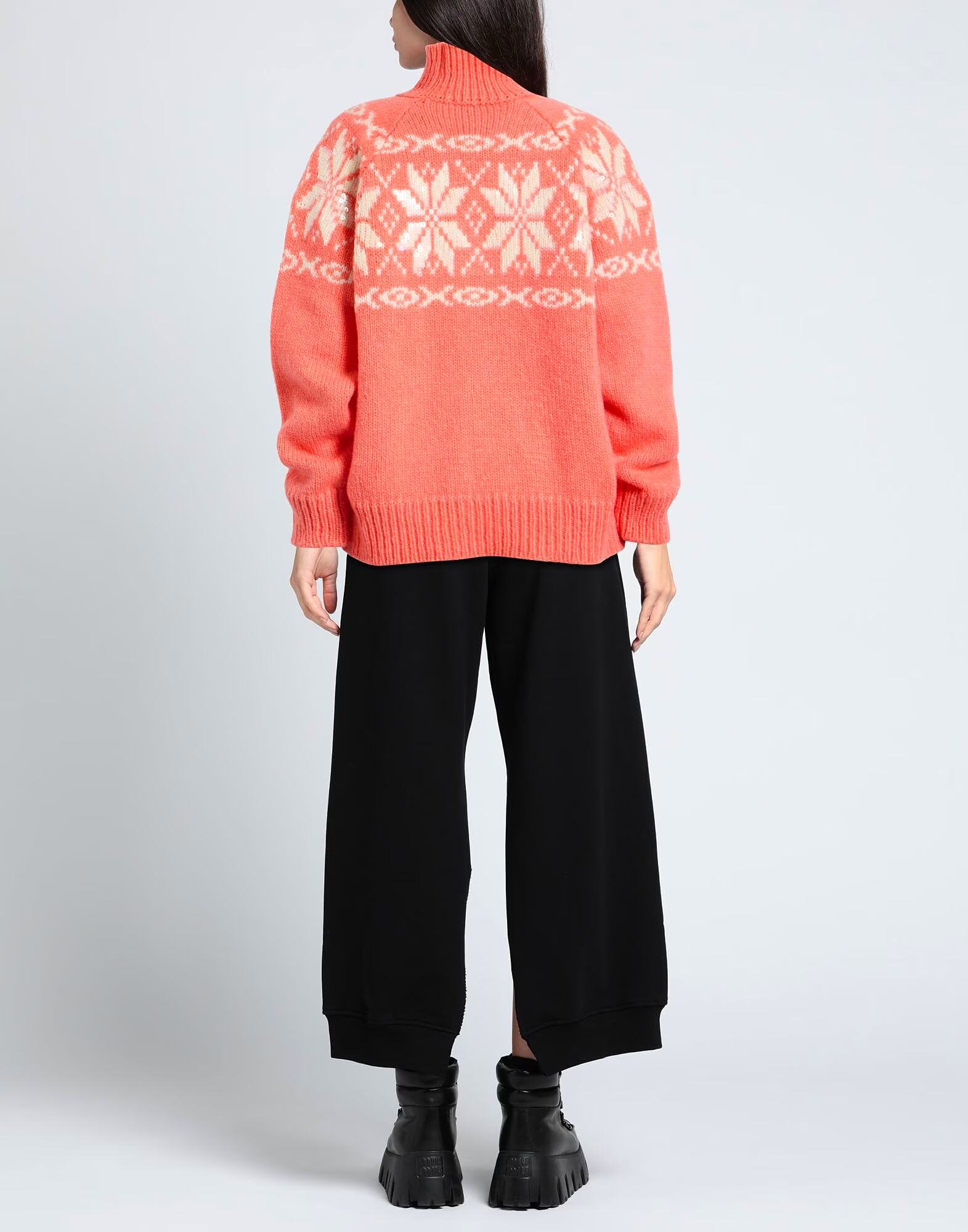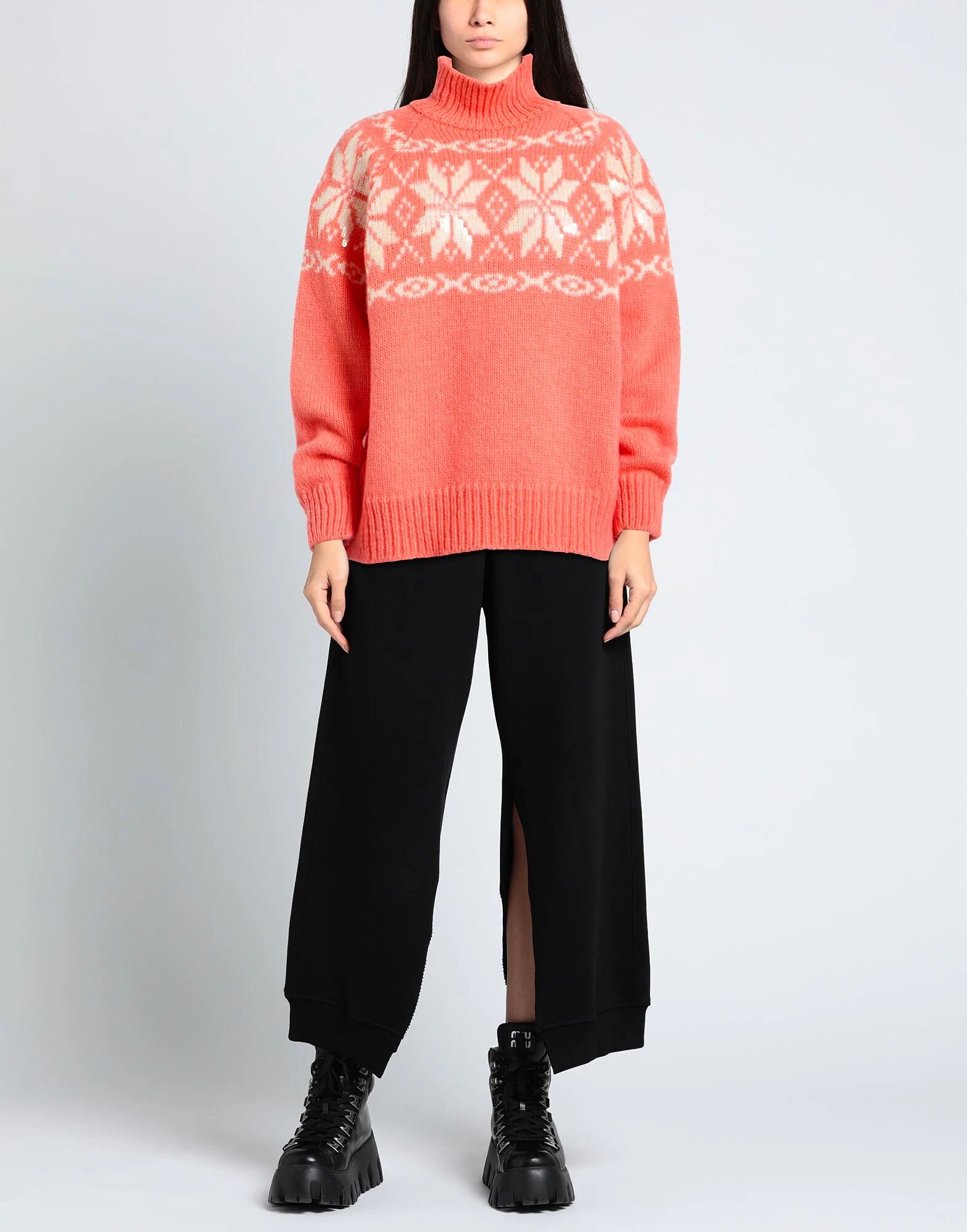 Вязаное полотно средней плотности, с пайетками, двухцветное, с высоким воротником, длинные рукава, ручная стирка или химчистка, не отбеливать, не сушить в сушильной машине